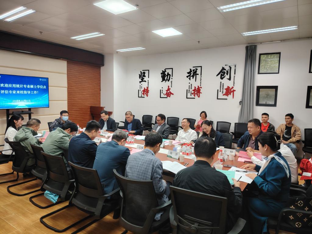 院长刘斌教授主持。专家组对相关材料进行详细审阅和提问。专家组对应用统计硕士专业学位授权点在培养特色、师资队伍建设、课程设置、奖助体系、实践成果、培养质量等方面取得的成效给予充分肯定,并就培养标准、培养方案、学生职业素养、产教融合等方面提出建议意见。