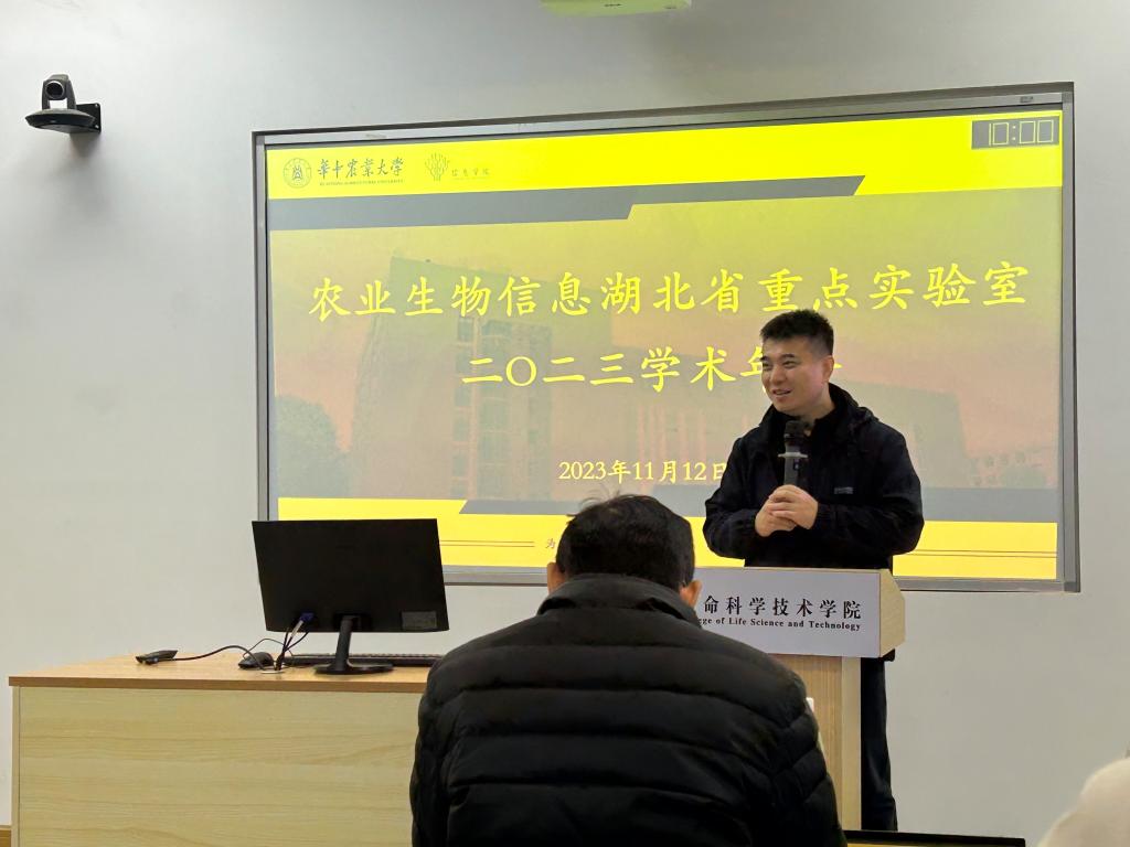 (文|孙艺萱、廖升 图|孙艺萱、何洋 编辑|信息 审核|唐广燕)2023年11月12日下午,农业生物信息湖北省重点实验室2023学术年会及学术委员会会议在华中农业大学第一综合楼A102召开。出席会议专家有武汉大学刘娟教授、湖北工业大学刘森教授,华中师范大学蒋兴鹏教授,武汉科技大学李波教授,华中农业大学张红雨教授、李国亮教授、李立教授,中科院水生所夏晓勤研究员。会议由李立教授主持,实验室主任张红雨教授致开幕词,对到场各位嘉宾表示热烈欢迎。