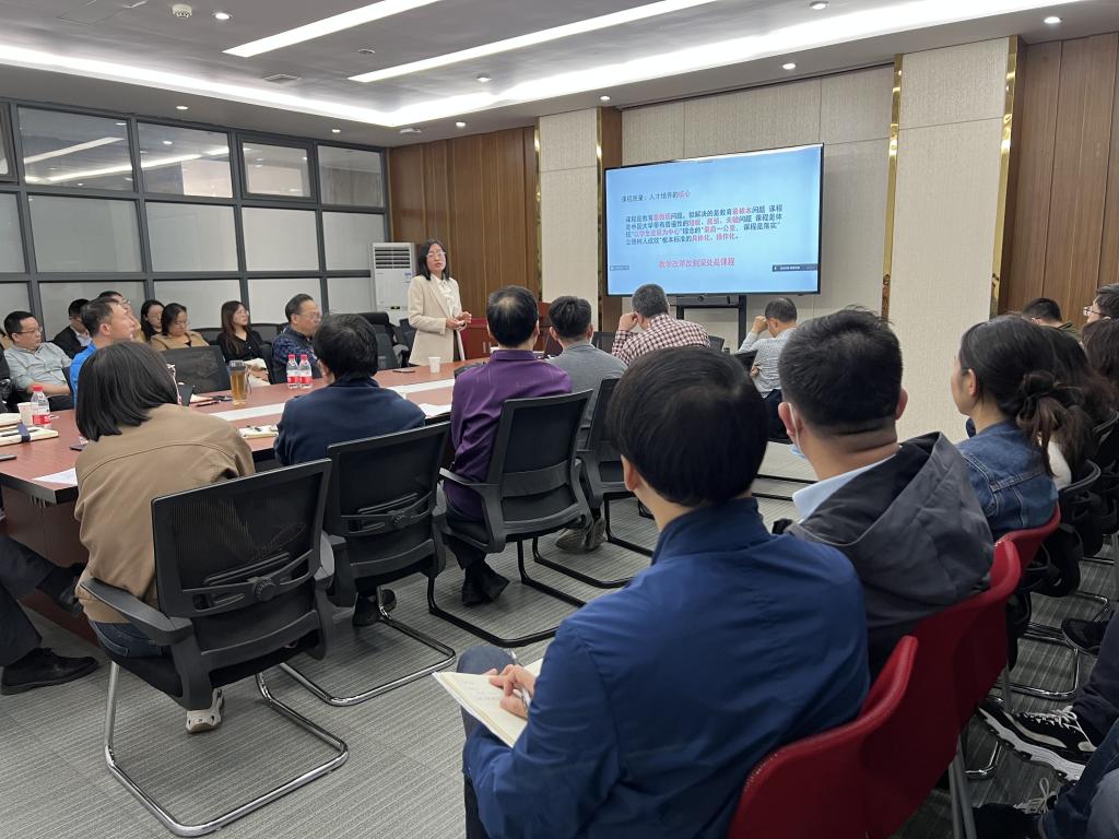 首先,王运教授以《无机及分析化学》国家一流课程建设为例,分享与介绍了如何整合该门课程?消除重复脱节,压缩学时,面向每学年20多个专业的2500余名学生。构建出专题讲授、翻转课堂、随堂测试、课外作业“四位一体”的基于MOOC同步的SPOC混合式课堂教学模式,并通过建立了线上公告、QQ通知、小组长督促和学习记录检查的常态化提醒管理机制等严格的课程教学质量保障体系,有力地解决了从MOOC获得知识的零散性,学生彼此协作学习,对线上学习质量担忧、MOOC教学同质化,及以学生为中心难等诸多问题。接着,肖湘平处长解读了一流课程质量要求与教学实践。她说到,教学改革改到深处是课程。课程是体现"以学生发展为中心"理念的"最后一公里, 课程是落实"立德树人成效"根本标准的具体化、操作化。并对线上一流课程、混合课程、线下一流课程进行了课程目标、教学理念、课程形态、课程内容、教学设计、授课教师、教学支持、效果与影响进行了解读与阐释。随即,概括了一流课程申报中的否决性指标,强调了课程目标必须符合新时代人才培养要求,授课教师(团队)须切实投入教学改革,课程内容与时俱进,教与学发生改变,评价拓展深化,改革应行之有效等。紧接着,肖湘平处长又对我校新时代基层教学组织建设得面临形势、建设之恒、建设之变及探索实践进行了报告。讨论提问环节,与会教师们对基于MOOC的同步SPOC课程专题讲授、小组讨论、课堂讨论、随堂测试、课外作业、三类一流课课程申报程序和基层教学组织运行驱动力、结构形态等问题进行了现场的咨询与请教。