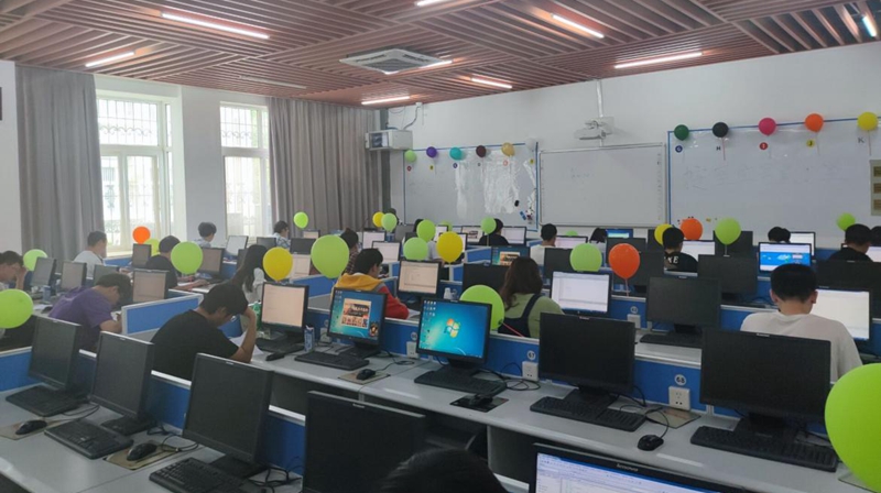 在整个比赛过程中选手们都沉浸其中,享受解答题目的过程。本次比赛共计12道题目,每道题目难度不同,比赛遵循公平公正原则,比赛通过OJ平台进行,提供 C/C++语言,IDE为 Code::Blocks,选手每答完一题,会有计算机自行检测,无人为因素干扰,系统执行自动化扫描,每道题目分别对应不同种颜色的气球,同时每解出一道题目,都会有工作人员在其电脑前贴上对应颜色的气球,插上气球则是对选手的充分肯定,也激发了答题者的动力。