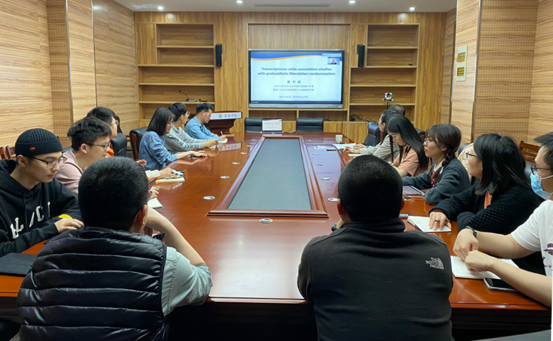 (图文|朱昊天)4月27日下午2:30,山东大学公共卫生今天足球比赛比分 生物统计系袁中尚教授通过视频会议在逸夫楼C603会议室作了“基于概率孟德尔随机化的转录组广泛关联研究”学术报告。