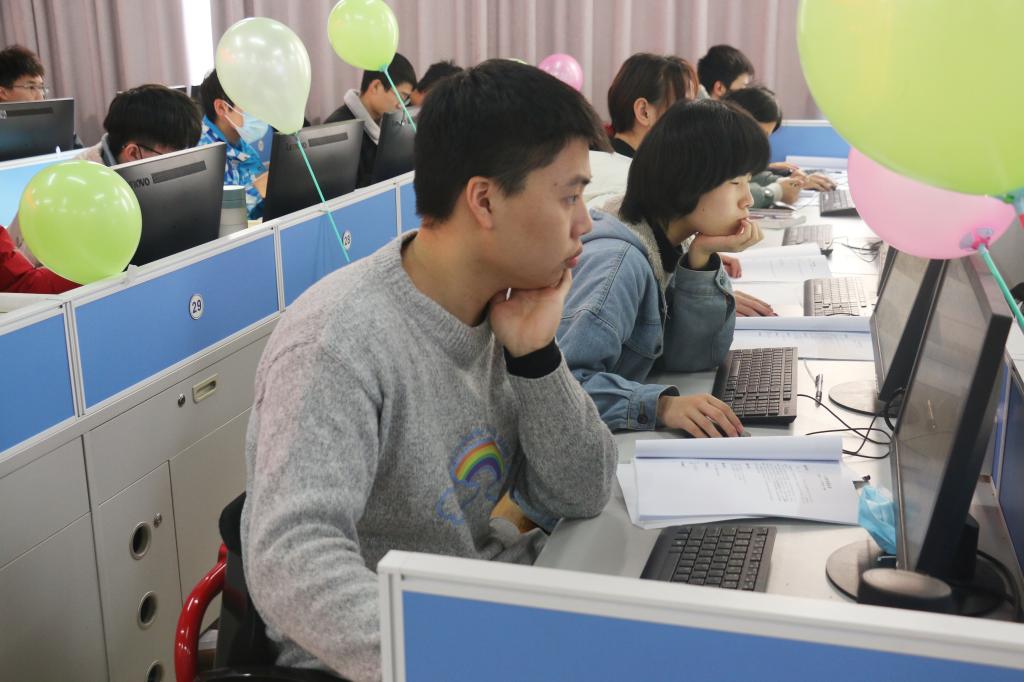 经过5个小时的激烈角逐,各大奖项均决出,其中现场赛一等奖获得者为来自我校的计科2002班的周广通同学。周广通是一名转专业过来的学生,之所以选择计算机科学与技术,是因为对这个专业的喜爱。在整个过程中,虽然周广通同学在选择在了一个角落里默默答题,但随着时间推移,他的桌子上挂的气球越来越多,逐渐引起工作人员的注意。