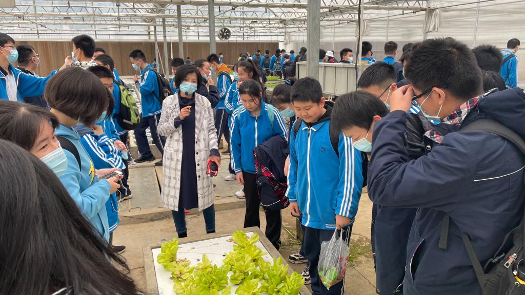 科普讲座后,校园导游和志愿者分四条路线,分批分组带领十四中师生参观游览博物馆、校史馆、园艺基地、南湖沿线及二十四节气柱等地点。馆藏丰富的博物馆、历史厚重的校史馆、色彩斑斓的园艺基地、清风徐徐的南湖沿线等场馆和校园环境吸引着十四中的师生驻足游览。博物馆二楼展厅的蝴蝶展,吸引学生们双双结伴拍照;野性珍灵展吸引学生们向讲解员不停提问“这是什么动物”“ 有什么样的习性”“秃鹫、中华鲟是怎样的”;来到园林基地后,科普讲解员向学生们介绍了罗马生菜、三色堇、玫瑰等品种,学生们通过向老师积极提问来满足好奇心和汲取新知识。