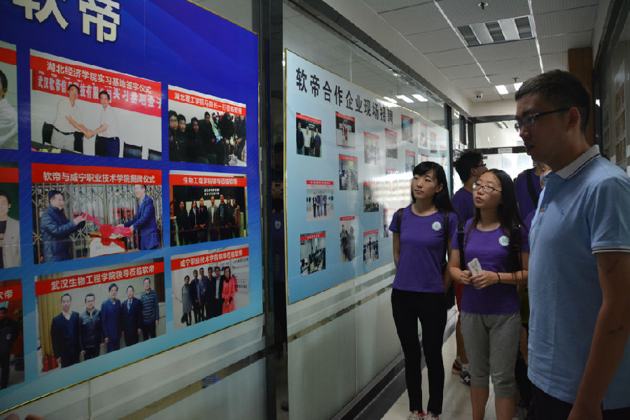 当天上午,软帝科技人事部负责人陈女士带领调研实践队参观了该公司,并且为调研实践队讲解公司内部的部门设置以及日常工作事务。据陈女士介绍,软帝科技主要有两大业务,一是外包业务,包括技术外包和人力资源外包;二是与高校的校企合作业务。在参观过程中,陈女士还给实践队成员讲解了软帝科技的总体架构设置及内部运作情况。