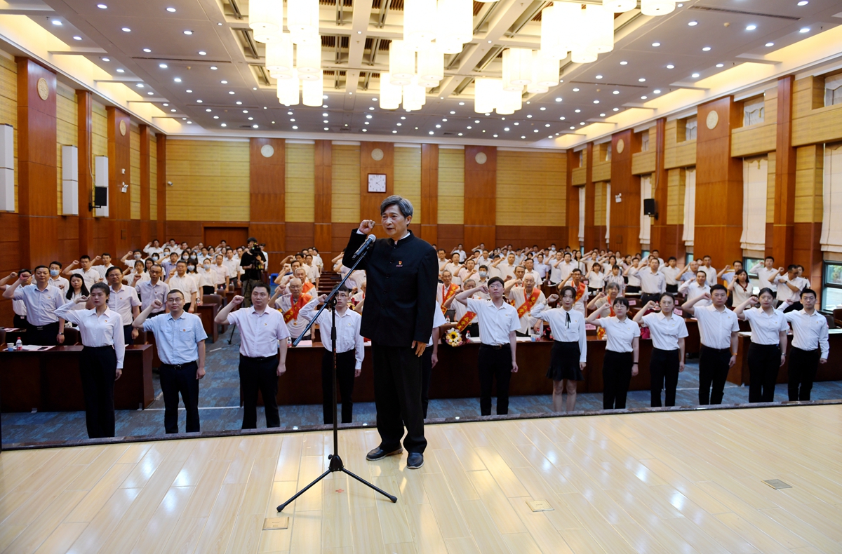 表彰会最后,高翅带领新入党的教师、学生党员代表进行入党宣誓,带领其他与会党员重温入党誓词。