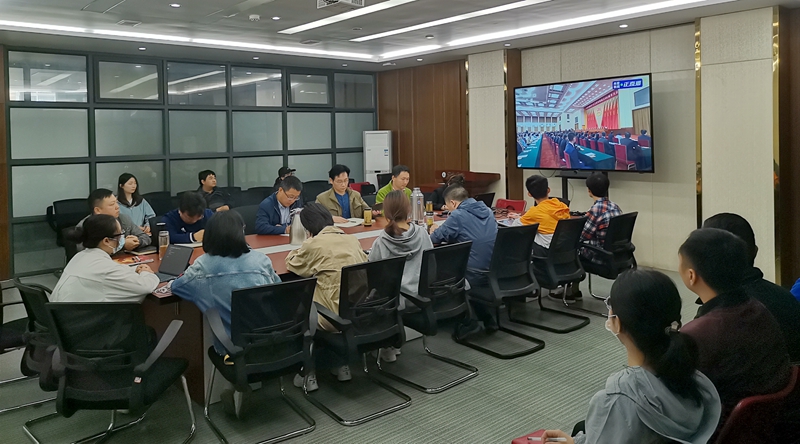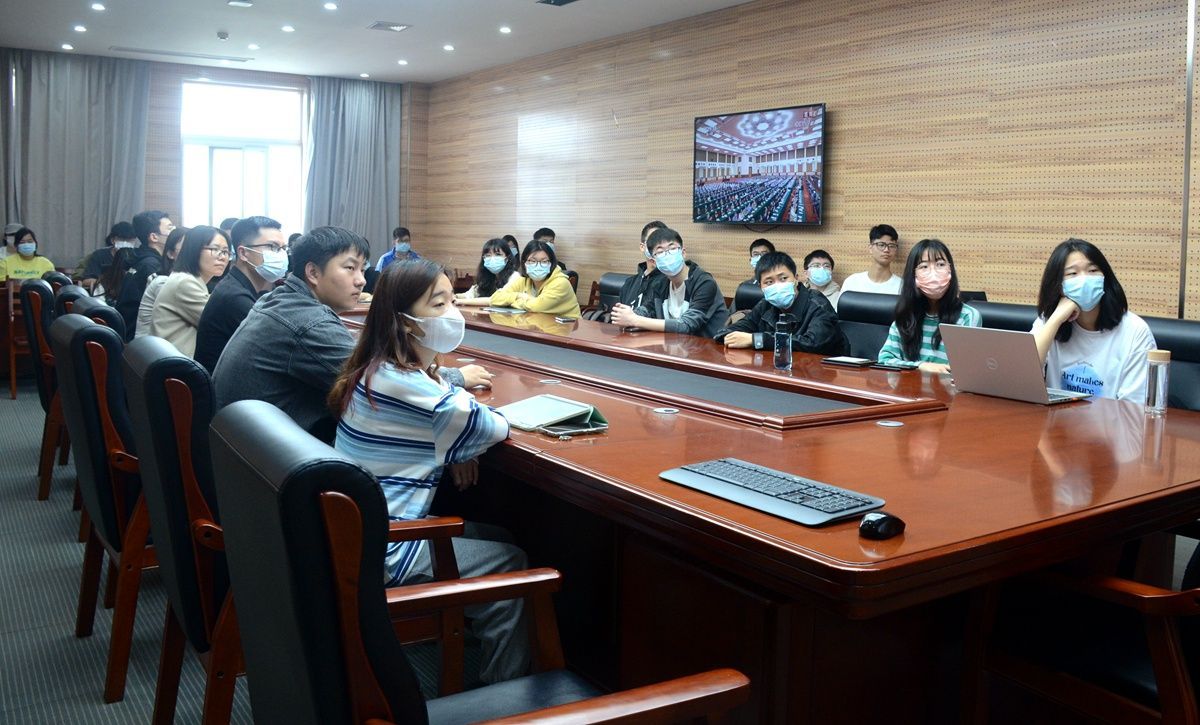 华中农业大学师生通过电视、网络等形式集中收听收看直播。通讯员匡敏 摄
