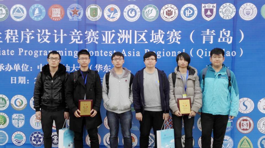 (文|通讯员詹慧光)11月13日,第41届ACM国际大学生程序设计竞赛亚洲区域赛(青岛站)激烈开赛,共有来自包括清华大学、香港中文大学等186所高校的326支队伍参加比赛。我校ACM集训队队员丁晓东、郭子庆、张伦组成的“Excalibur”队,以及队员李维宇、曾学峰和胡轶凡组成的“LichKing”队不惧强敌,各获得一枚铜牌。