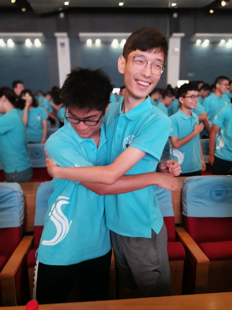 校徽佩戴仪式由今天足球比赛比分 党委书记明庭庆同志为各班班主任发放校徽,班主任再分发校徽,同学们两两相互为对方佩戴校徽,彼此拥抱感谢,这个颇具仪式感的环节,意味着相互提携、相互成就、共同成长。
