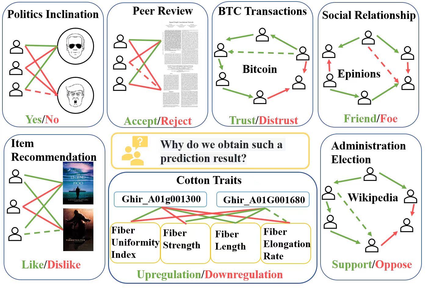 符号图神经网络被广泛用于符号图的表征学习。在现实数据集中,符号图可被用于建模生物基因与表型的上下调关系、选民的政治倾向、论文的审稿意见,用户的商品评价等。然而,现有的符号图神经网络(SGNNs)往往缺乏足够的可解释性,限制了其在一些需要理解预测依据的关键场景中的应用。