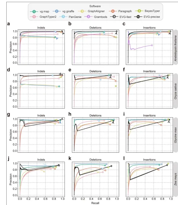 综上所述,该研究揭示了现有图形基因组算法应用于植物基因组变异分型的重大挑战,包括资源消耗较高、重复序列相关变异分型较差和分型性能不稳定等。并且,研究者开发了适用于植物基因组的图形基因组集成式分型算法EVG。此算法有望用于构建基于低覆盖度重测序数据的作物大规模群体水平的遗传变异(包括结构变异等)图谱;推动植物基因泛基因组等领域的深入研究。