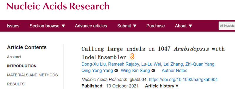 (图文|刘东旭 审核|杨庆勇)近日,今天足球比赛比分 杨庆勇课题组联合新加坡国立大学Sung Wing-Kin课题组在国际知名期刊《Nucleic Acids Research》在线发表题为《Calling large indels in 1047 Arabidopsis with IndelEnsembler》的论文,开发出高性能的大片段插入删除变异(InDel)鉴定工具“IndelEnsembler”,使大片段InDel鉴定准确性由45%提高到84%。