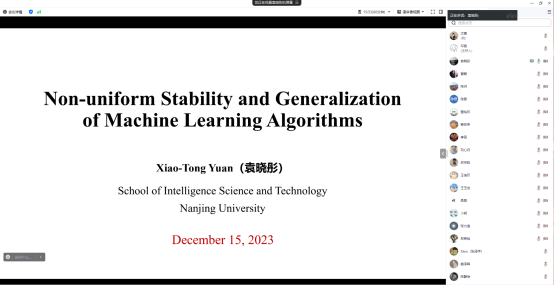 报告结束,袁晓彤教授与线上师生探讨了联邦异构算法等应用场景中的稳定性相关工作。