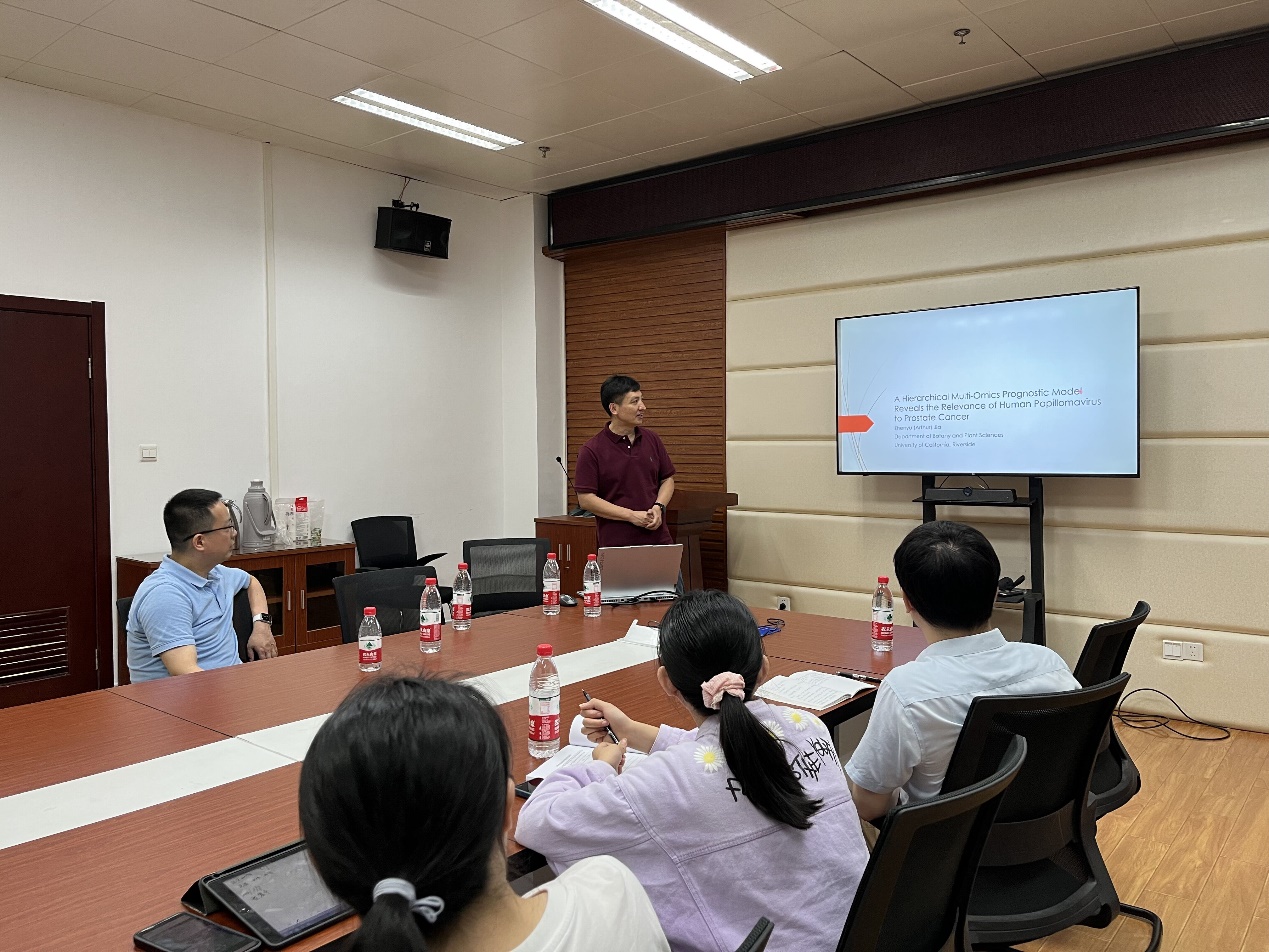 加州大学河滨分校贾震宇副教授做“A Hierarchical Multi-Omics Prognostic Model Reveals the Relevance of Human Papillomavirus to Prostate Cancer”报告