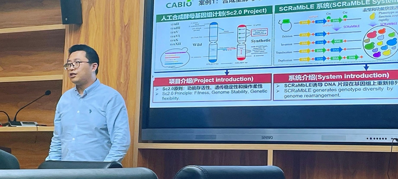 在逸夫楼C603会议室开展了以“生物造万物—合成生物学产业的腾飞”为主题的学术报告,此次会议邀请了嘉必优生物技术(武汉)股份有限公司合成生物学负责人刘洋博士、王琼博士、研发工程师朱文冉。