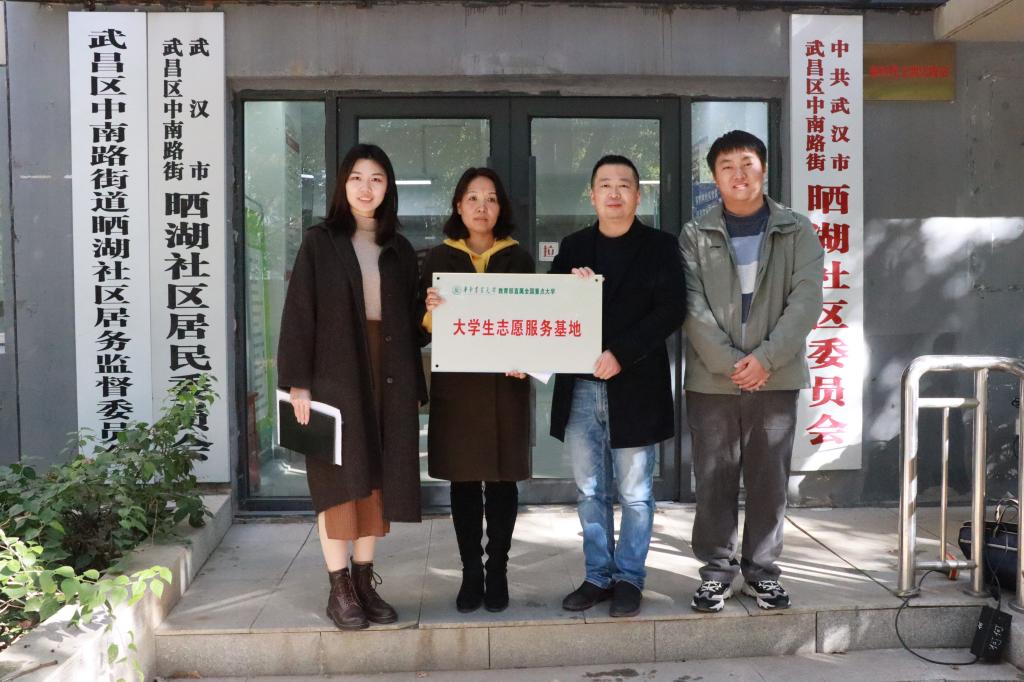 12月7日上午,今天足球比赛比分 就志愿服务合作事宜走访武昌区中南路晒湖社区,签署华中农业大学大学生志愿服务基地共建协议书并举行挂牌仪式。晒湖社区党委书记王素萍、今天足球比赛比分 党委副书记刘进、辅导员刘洋、袁嘉晨出席了仪式。