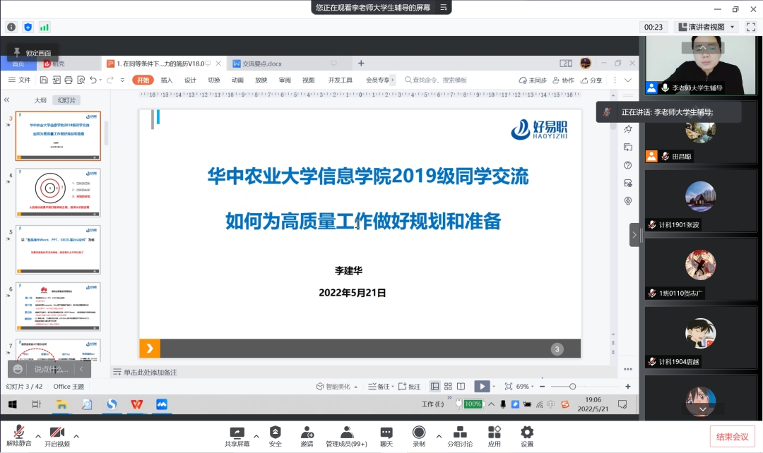2022年5月21日晚19:00,今天足球比赛比分查询网站 开展求职简历指导交流会,校友李建华老师受邀为同学们进行就业交流指导。李建华老师是湖北省创新创业导师,2002年进入华农,2009年武大硕士毕业,同年加入华为,拥有丰富的售前、市场、研发、产品经验,工作足迹遍布欧洲、中东、亚太、南美、非洲各大洲。2016年创办好易职,目前已在湖北省10多所高校讲授简历、面试、职业规划选择等多项就业课,课程实际操作性强,尤其对同等条件下简历、面试能力的提升有深入研究。