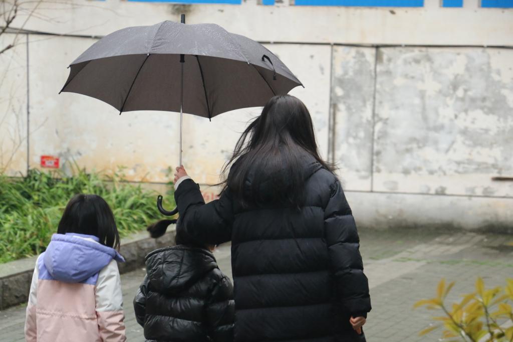 上午9:50,第二批志愿者也来到了现场协助新来的两位医生进行采样工作。由于室外的雨越下越大,志愿者担心小朋友们淋雨生病,贴心地打伞护送小朋友们返回教学楼。