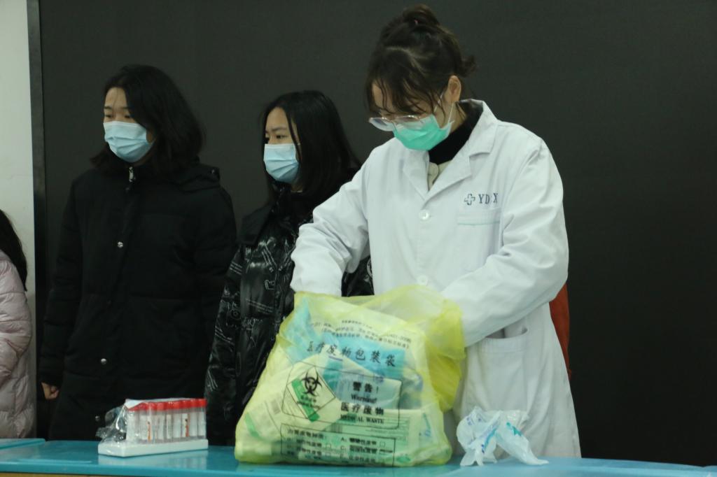 随后,负责采样的医生也来到了现场,对志愿者进行物品发放和手机录入信息等工作的培训。