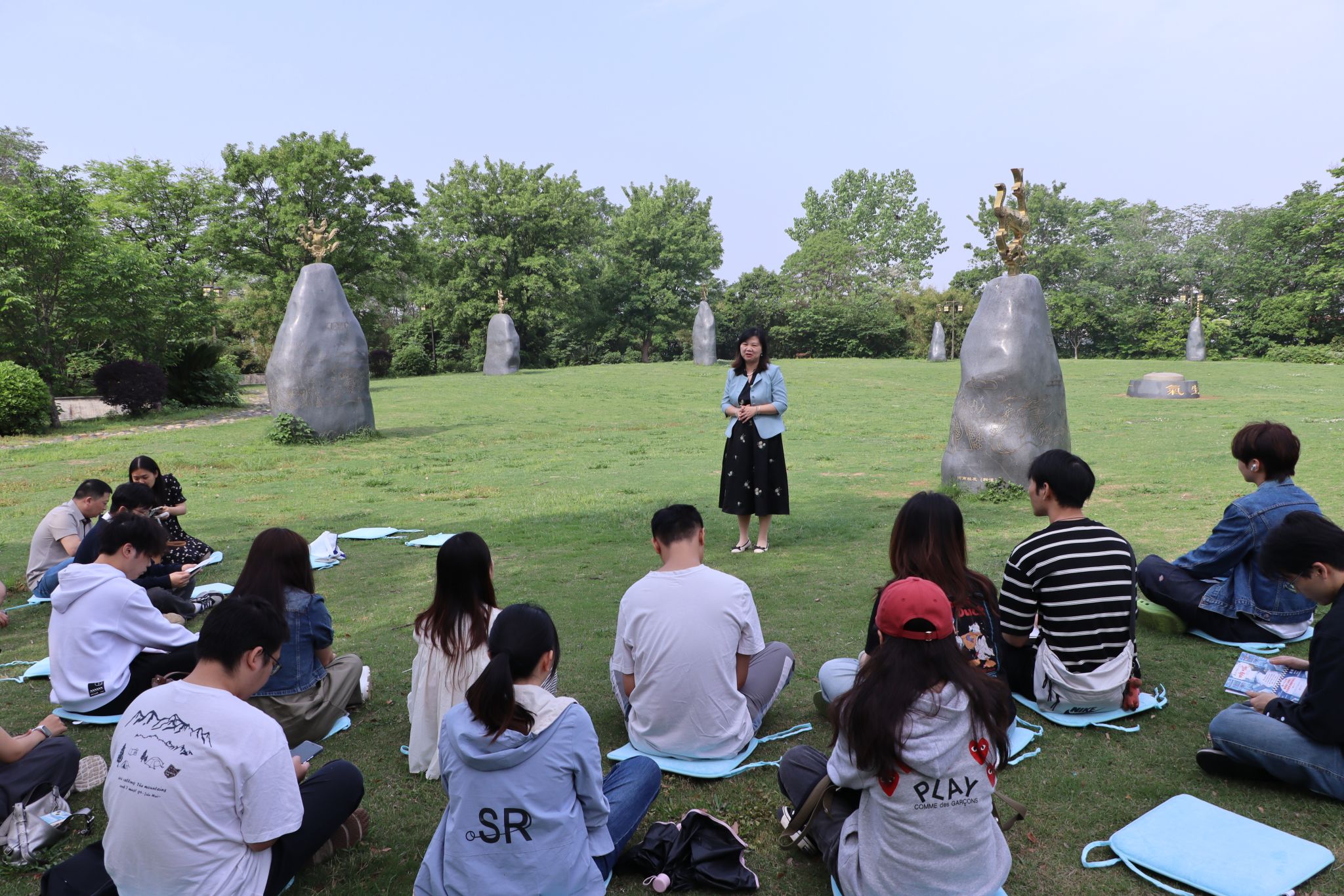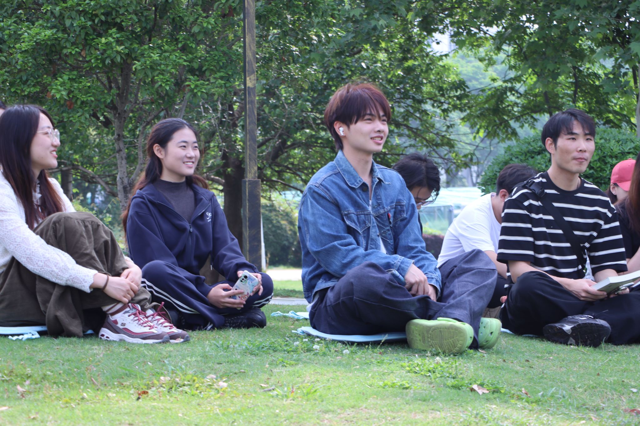 在书籍漂流环节,同学们手拿实体书,一边展示,一边分享《围城》《白鹿原》《茶馆》《我与地坛》《美学散步》《人类群星闪耀时》等经典作品。分享中同学们介绍了作品的主要内容、阅读中的体会和收获,声情并茂地诵读了精彩片段。听众们饶有兴致、若有所思,偶尔受到触动,颔首点头。二十四节气柱雨后青绿的草坪上,师生们沉浸其中,仿佛忘记了时间的流逝。随后,两校师生进行书籍交换互赠伴手礼,进一步加深了校际情谊。