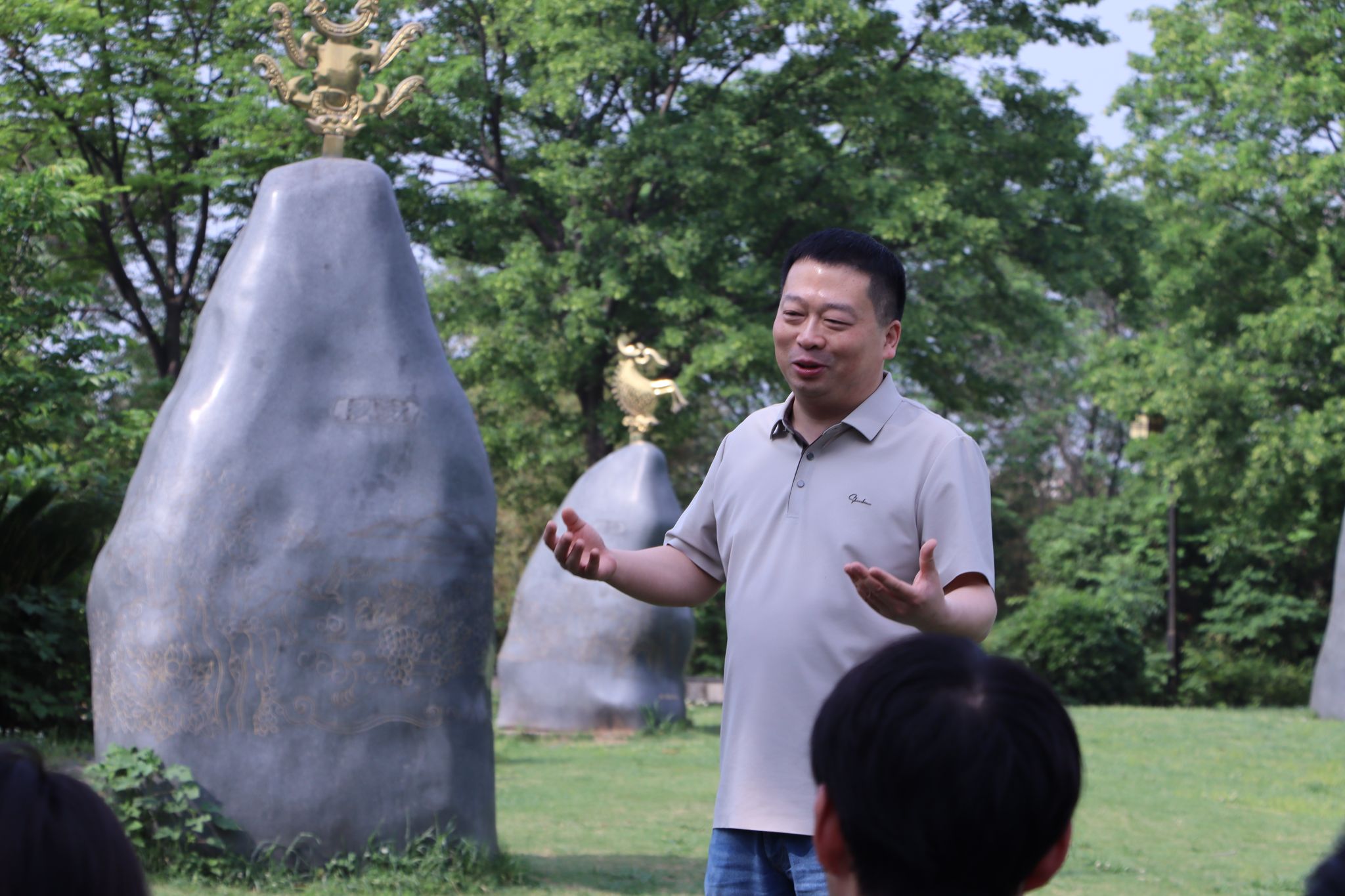 读书交流结束后,两校师生共同前往图书馆参观“狮山读书节”《狮山学者三大期刊学术成果展》并登临“未来之窗”,俯瞰校园全貌。随后师生们参观了学校博物馆和祝鑫工作室。