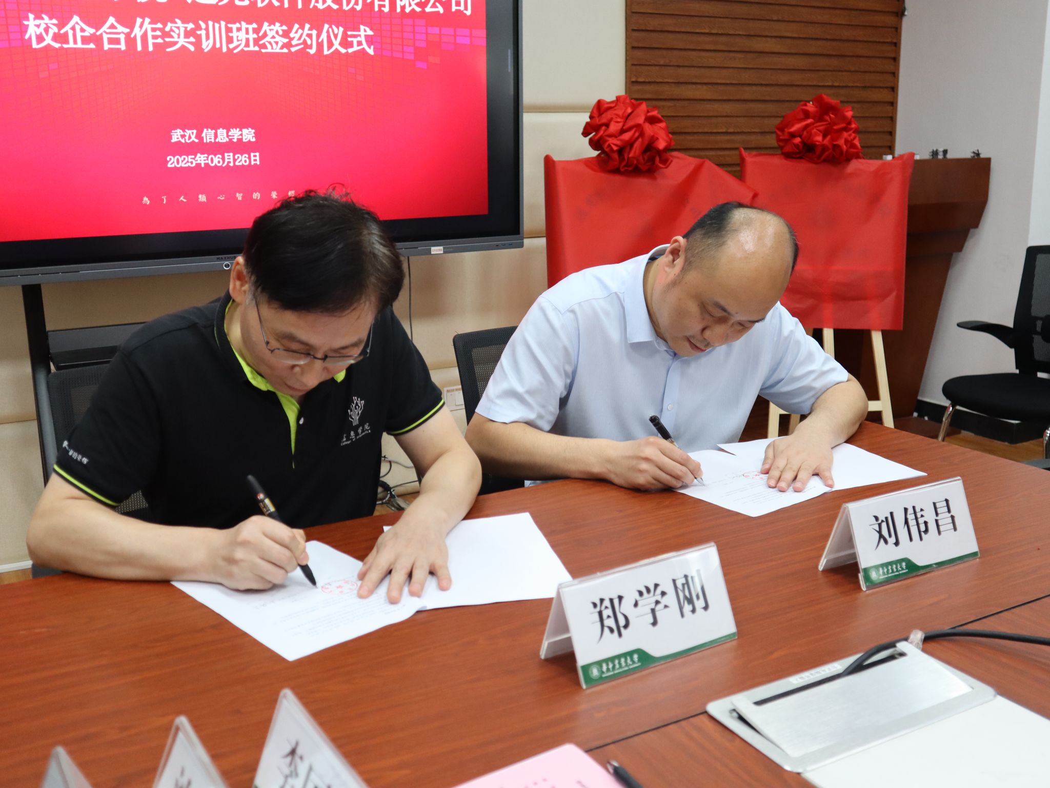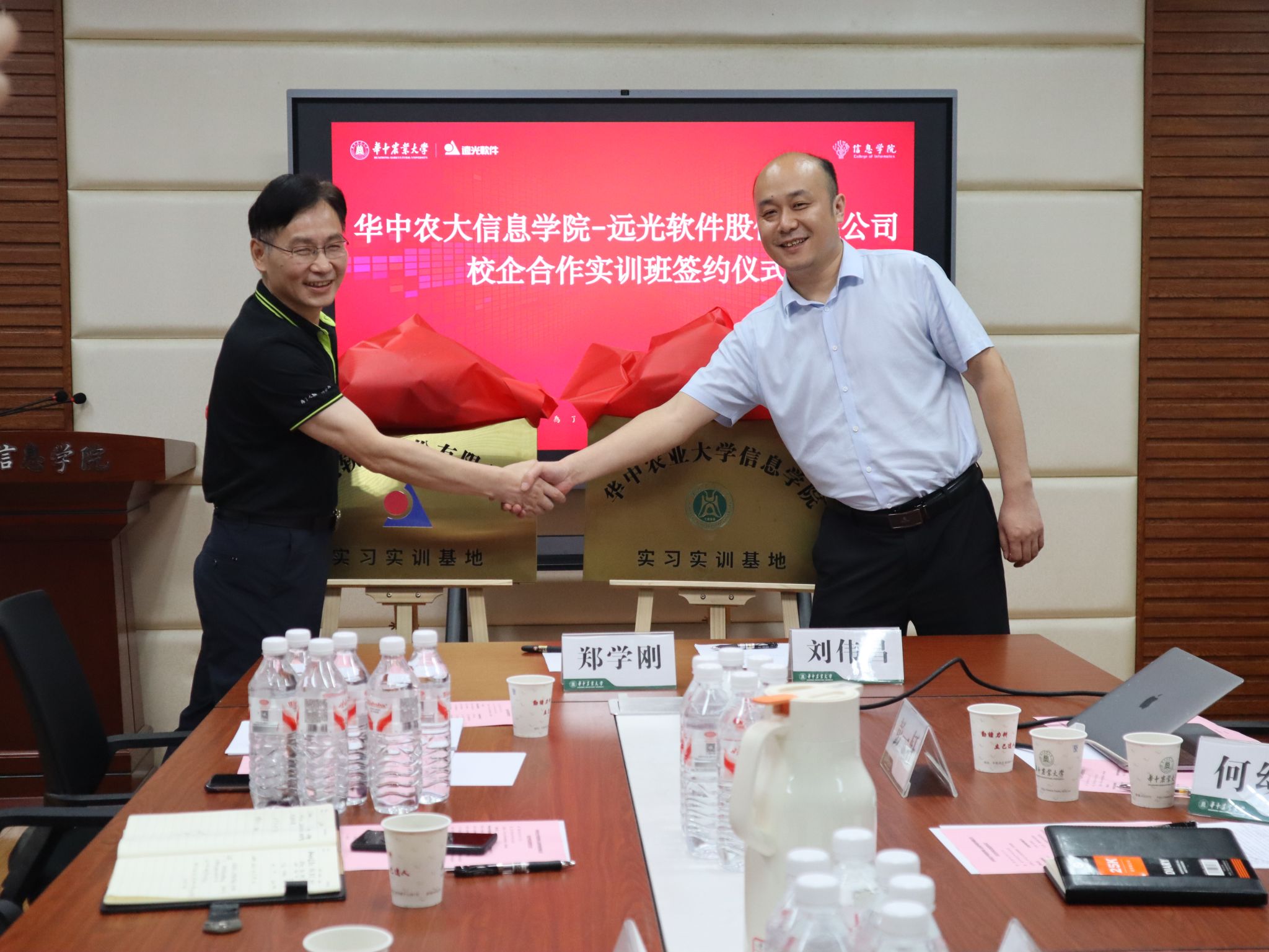 6月26日下午15:00,远光软件股份有限公司校企合作实训班与我校今天足球比赛比分 签约仪式,在一综B113举行。远光软件股份有限公司副总裁刘伟昌、大数据事业部总经理张允君、副总经理彭一轩一行6人,今天足球比赛比分 党委书记郑学刚、院长张红雨及领导班子成员、专业老师等参与本次签约仪式。