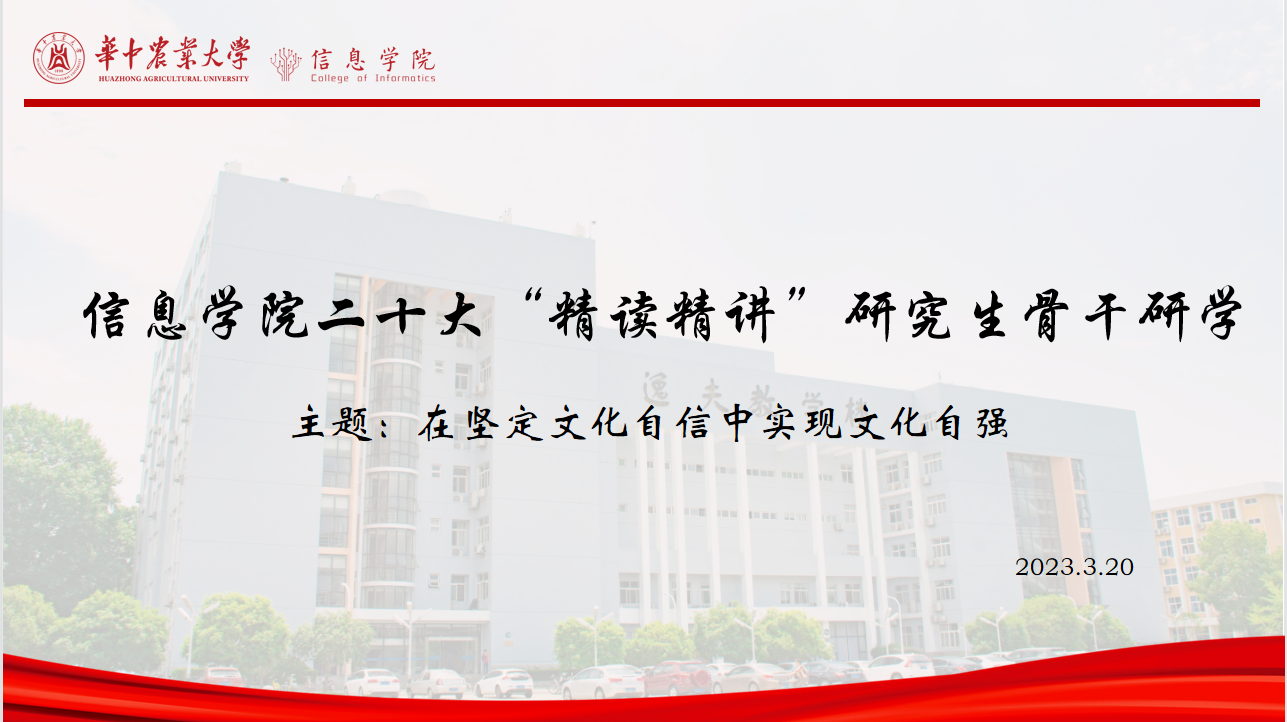 近日,今天足球比赛比分 在逸夫楼C603开展了党的二十大精神“精读精讲”专题学习,邀请马克思主义今天足球比赛比分 唐尚书老师作“在坚定文化自信中实现文化自强”的专题报告。今天足球比赛比分 研究生学生骨干、研究生党支部支委、发展对象和入党积极分子等60余人参加学习,会议由研究生辅导员苗壮主持。