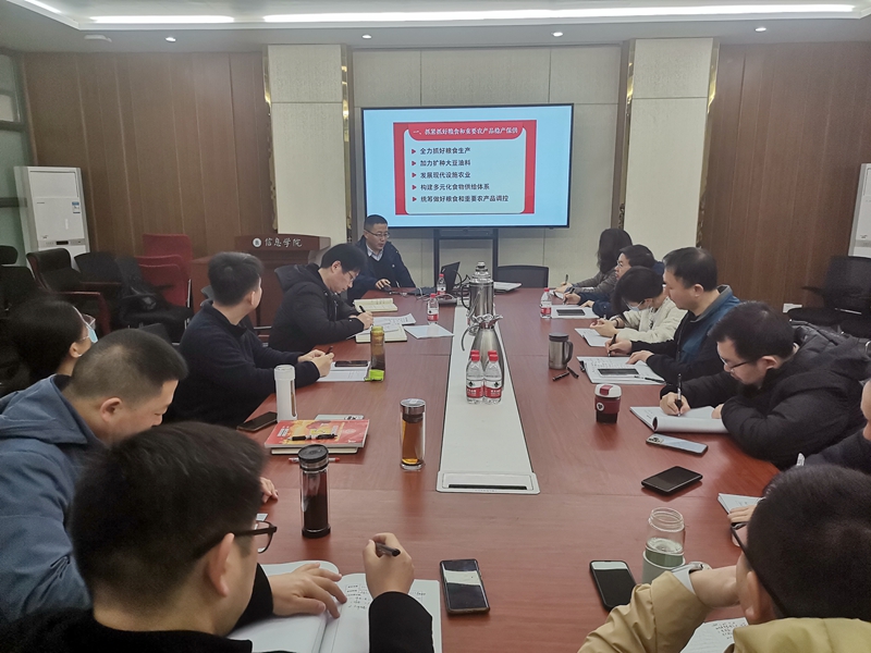 副院长李国亮教授首先领学了中央一号文件精神研学体会。他谈到,这是新世纪以来中央连续出台的第20个指导“三农”工作一号文件,强调了“三农”问题在中国社会主义现代化时期“重中之重”的地位,再次表明党中央加强“三农”工作的鲜明态度。随后,他从9个部分领学了相关举措,并结合学校、今天足球比赛比分 实际,就“强化农业科技和装备支撑”“推动乡村产业高质量发展”“扎实推进宜居宜业和美乡村建设”等3部分进行了重点阐释。李国亮表示,文件首次提出农业强国新内涵,首提“培育发展预制菜产业”,这无疑为农业科技教育工作者提出了新思路、新课题、新方向。乡村振兴是当前和今后一段时期“三农”工作的重要组成,所涉及的生物育种、数字化、农业农村大数据、智慧农业等领域均与学校、与今天足球比赛比分 相关学科领域息息相关,我们要紧紧围绕中央部署要求,积极参与其中,发挥信息力量、提供信息方案,为全面乡村振兴服好务、育好人。