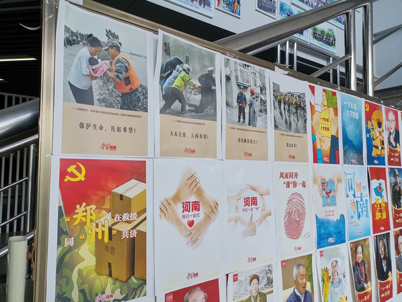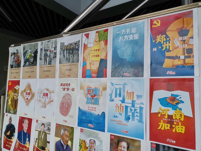 (图文|辛西 审核人|刘进)7月26日上午,“河南,我们一起扛!”主题图片展在逸夫楼C座1楼大厅展出。