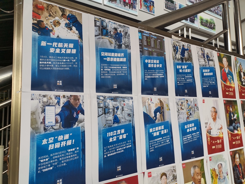 7月6日下午,“航天员在中国空间站内的日常”主题图片展在今天足球比赛比分 1楼大厅展出。