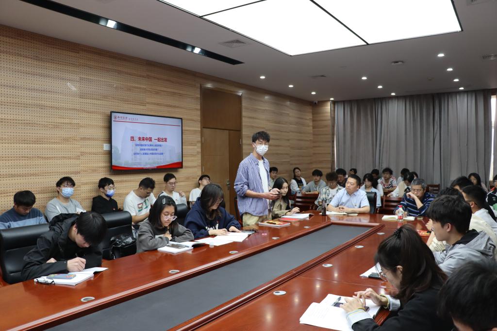交流发言环节气氛热烈。曾胡爽同学表示,以中国式现代化全面推进中华民族伟大复兴,需要青年铭记初心,用坚定信念奔赴理想。在奔赴理想的征程上,个人理想与国家未来是辩证统一的,广大青年要把自己的理想同祖国的前途、把自己的人生同民族的命运紧密联系在一起,扎根人民,奉献国家。赵志诚同学表示,如今新时代青年正在用行动证明自己堪当大任,在脱贫攻坚的战场,在抗疫斗争中,在北京冬奥会的志愿服务岗位上,在保卫祖国边疆的哨卡。量子科学团队平均年龄35岁;“嫦娥”团队、“神舟”团队平均年龄33岁;新一代“北斗”导航卫星研制团队平均年龄31岁。实现第二个百年奋斗目标也就是一两代人的事,我们正逢其时、不可辜负,征途漫漫、惟有奋斗,以青春之力托举中国式现代化。缪沁竹同学谈到,目前国家正在加快推进新一代信息技术发展,以信息化培育新动能,用新动能推动新发展,以新发展创造新辉煌。计算机类专业有力地支撑着一带一路、科技强国、中国制造2025等国家战略,助力了嫦娥、天问等重大国家工程。身为计算机专业的学生,我们应当加入科技强国奋斗者的行列,利用所学的专业知识推动富国强国之梦。