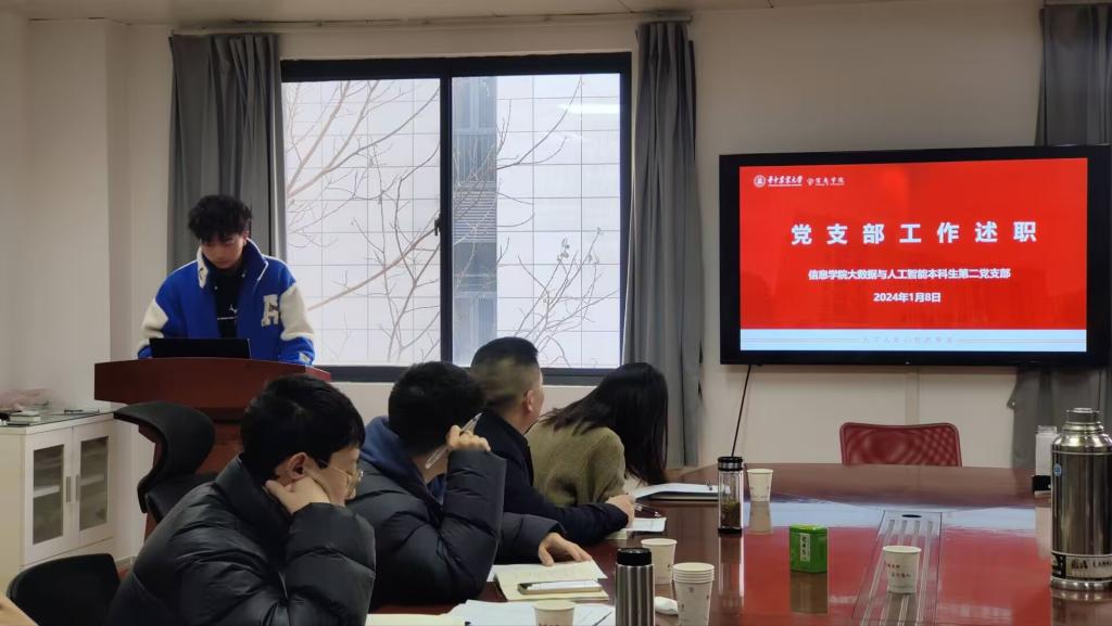 大数据与人工智能本科生第一党支部的韩申同志从加强队伍建设,建强战斗堡垒;加强思想建设,筑牢思想根基两个方面对支部主要工作进行了总结。同时指出了工作中发现的两个主要问题:党建引领作用发挥不充分,从严管党治党力度不够,要在支部思想建设,组织建设上持续下功夫。韩申同志述职汇报中准确、务实的党言党语以及对党建工作的深刻思考赢得了在场老师与同学们的一致好评。