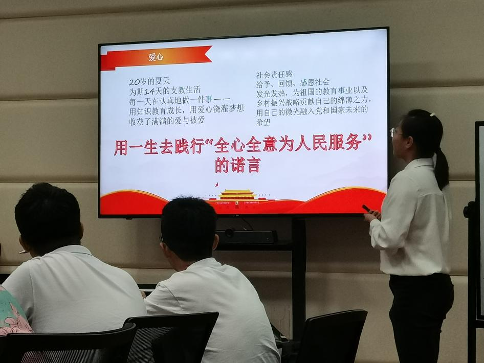 “作为一名预备党员,我能为国家做点什么吗?”来自计科本科生第四党支部的胡梓煊以自身经历回答了这个疑问。她受我校原创话剧牵挂中台词“想做不做,机会错过”的激励,决定追寻我校校友赵福兵的步伐,选择去乡村支教。在支教过程中,她用知识教育成长,用爱心浇灌梦想,用所学去更多地给予、回馈、感恩社会。为祖国的教育事业以及乡村振兴战略贡献自己的绵薄之力是她的初心,用自己的微光融入党和国家未来的希望是她的使命,她更是许下承诺,将用一生去践行“全心全意为人民服务”的誓言。