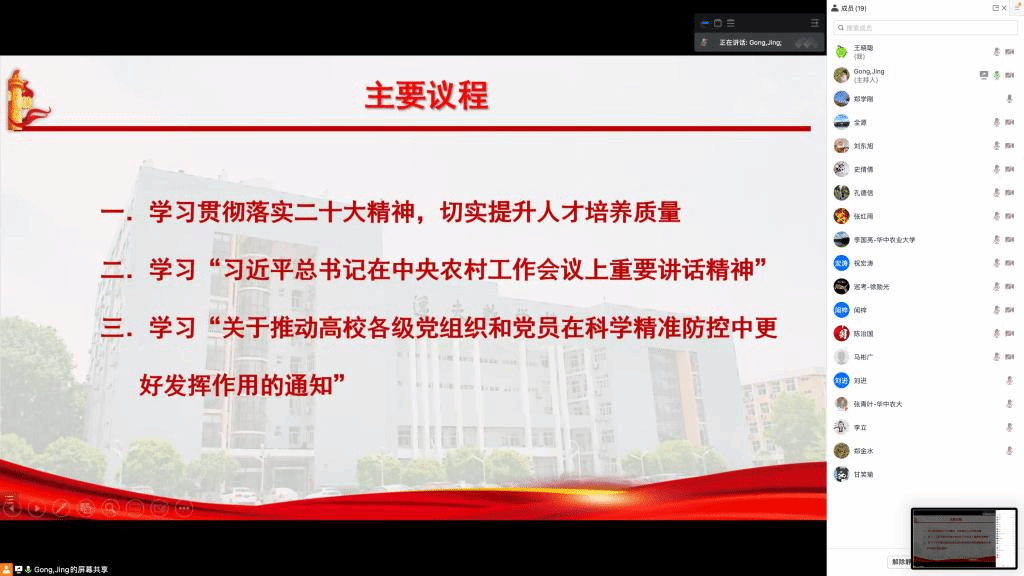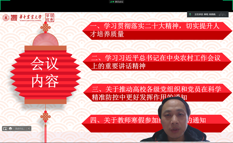 (图文|辛西 编辑|信息 审核|刘进)1月5-6日,各教工党支部纷纷开展元月份主题党日活动,进行专题研学。在支部书记或支委的带领下,支部(系部)成员专题研学了“学习贯彻落实二十大精神,切实提升人才培养质量”、习近平总书记在中央农村工作会议上重要讲话精神以及教育部思政司文件《关于推动高校各级党组织和党员在科学精准防控中更好发挥作用的通知》。今天足球比赛比分 领导班子成员全员参加了生物信息支部(系部)的主题党日活动。学校派驻广州影子公司专家团临时支部也开展了主题党日活动。