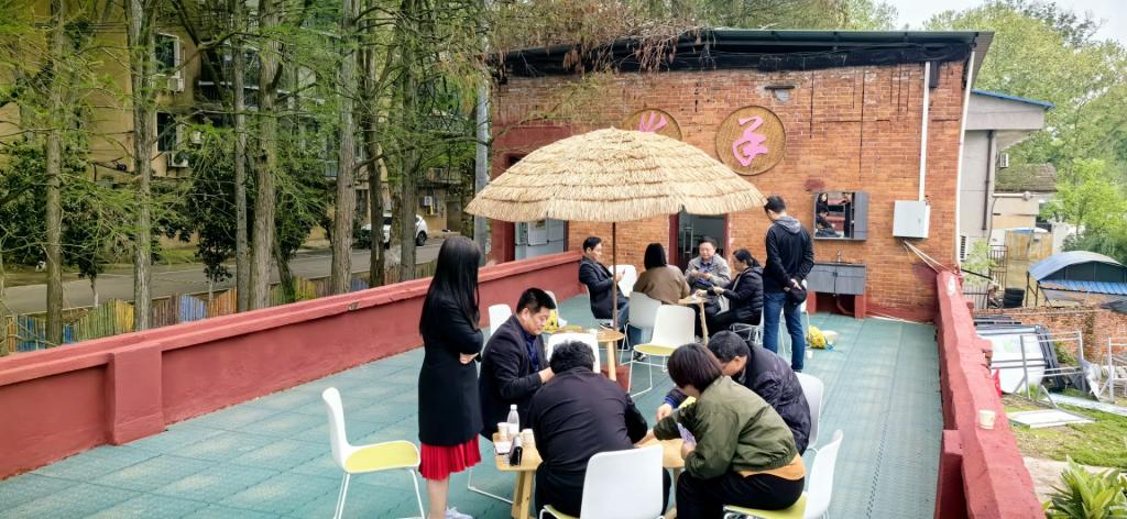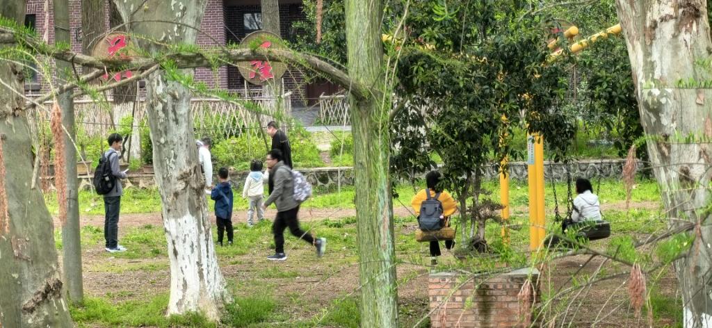 中午一点半,大家在园区职工食堂用过午餐后,开始自由活动。有的陪同小孩一起荡秋千、挖野菜,有的爬山附近小山坡欣赏美景,有的开展“升级”“掼蛋”等智力活动......