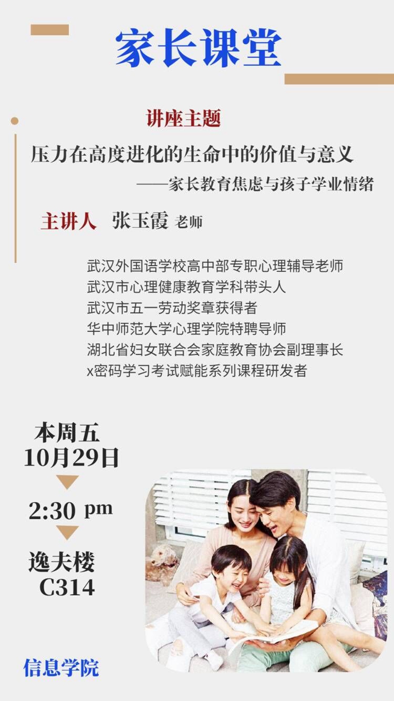 讲座主题:压力在高度进化的生命中的价值与意义——家长教育焦虑与孩子学业情绪
