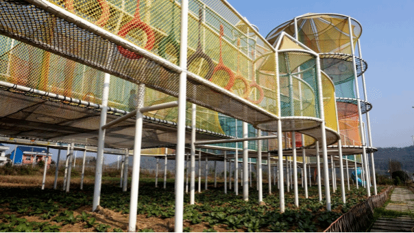 实践团跟随华伍党支部王晓彤,走访“稻田小勇士”和“小小特种兵”项目,感受产业创新融合带来的活力。“共享菜园”提供家庭、小组或公司团队耕种机会,耕种认领既增进亲子互动,又增强团队合作。华伍村还建立不破坏耕地架空式“稻田小勇士”项目和稻田运动共生“小小特种兵”儿童素质拓展基地,实现农旅与教育创新融合,为孩子营造寓教于乐环境。基于此,实践团成员范静也提出水肥一体化系统和智慧监测蔬菜生长系统,依托“智慧养殖”理念推进产业融合,助力华伍乡村振兴多元化发展。