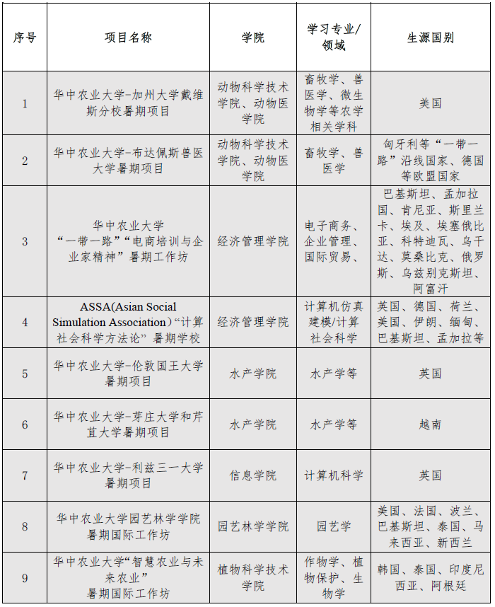 等发起。项目聚焦基础和前沿,突出学科特色,发掘国际资源,立项了“华中农业大学-加州大学戴维斯分校暑期项目”“华中农业大学-利兹三一大学暑期项目”等优质项目。暑期学校项目将深化中外青年学术友谊和交流互鉴,吸引更多优秀青年科研人才来我校学习深造。