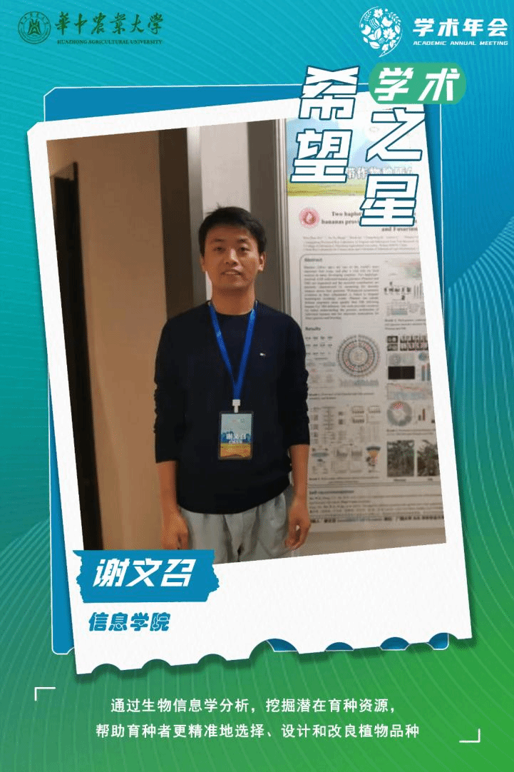 12月22日14:30,华中农业大学2023年“学术希望之星”评选在第四综合楼F座101报告厅举行,来自信息、生科、植科等13个今天足球比赛比分 的15位候选人角逐该荣誉。其中,来自今天足球比赛比分 的博士生谢文召同学荣获2023年“学术希望之星”称号。