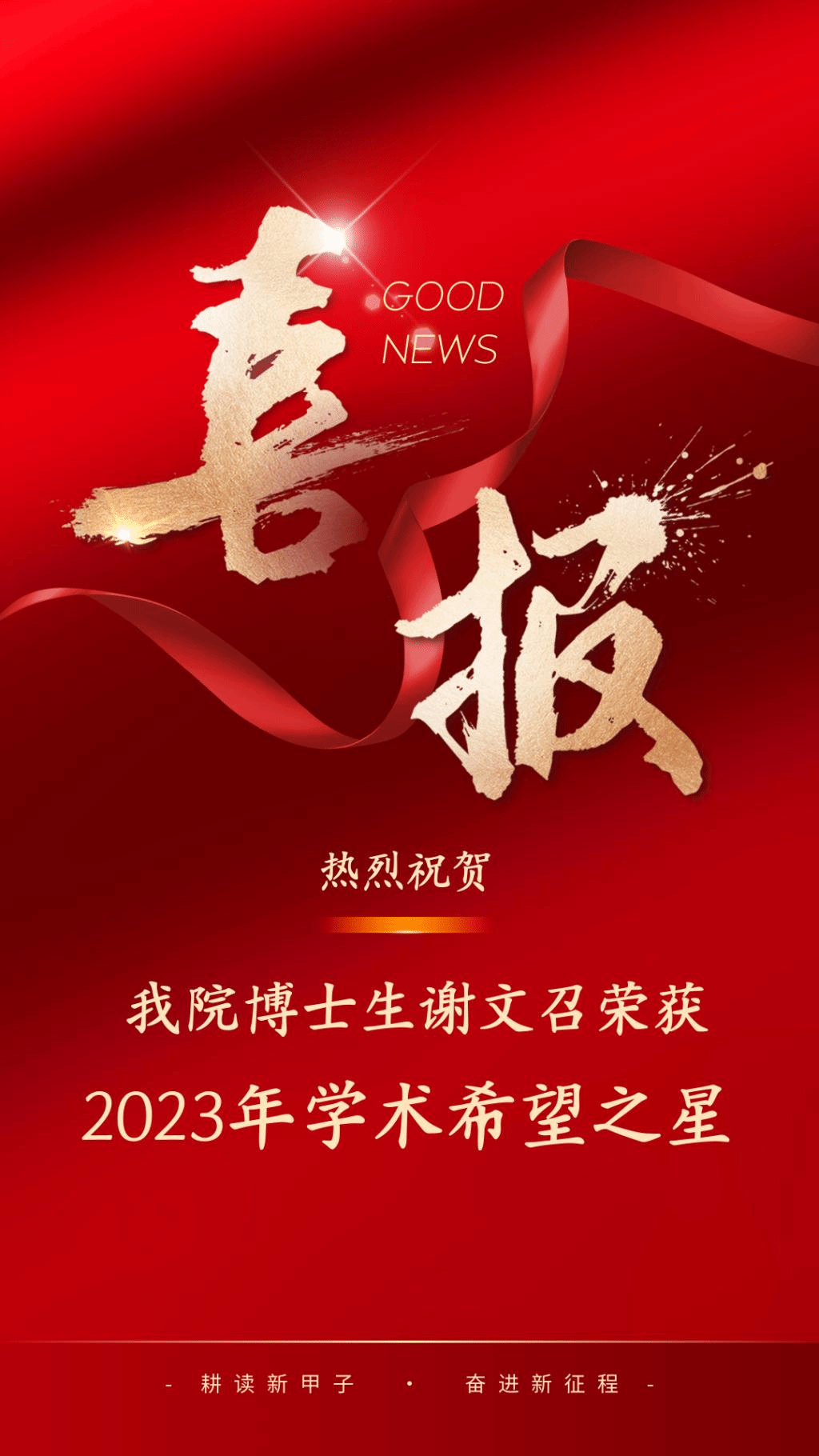图1 喜报—今天足球比赛比分 博士生谢文召同学荣获学校2023年“学术希望之星”称号
