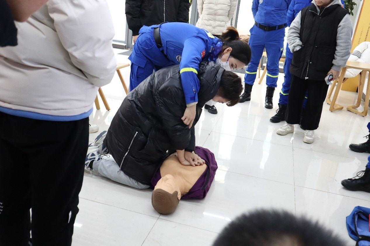 宣讲结束,救援队的徐老师通过现场示范,为大家详细讲解了心肺复苏操作流程。演练环节,在场同学们纷纷排队进行尝试。针对每一位同学,徐老师都细心地纠正大家的动作,提醒大家在进行按压时一定要保持肩、肘、腕成一条直线,并利用髋骨的力量进行按压,只有掌握了这几点,才能在救援中正确实施心肺复苏。