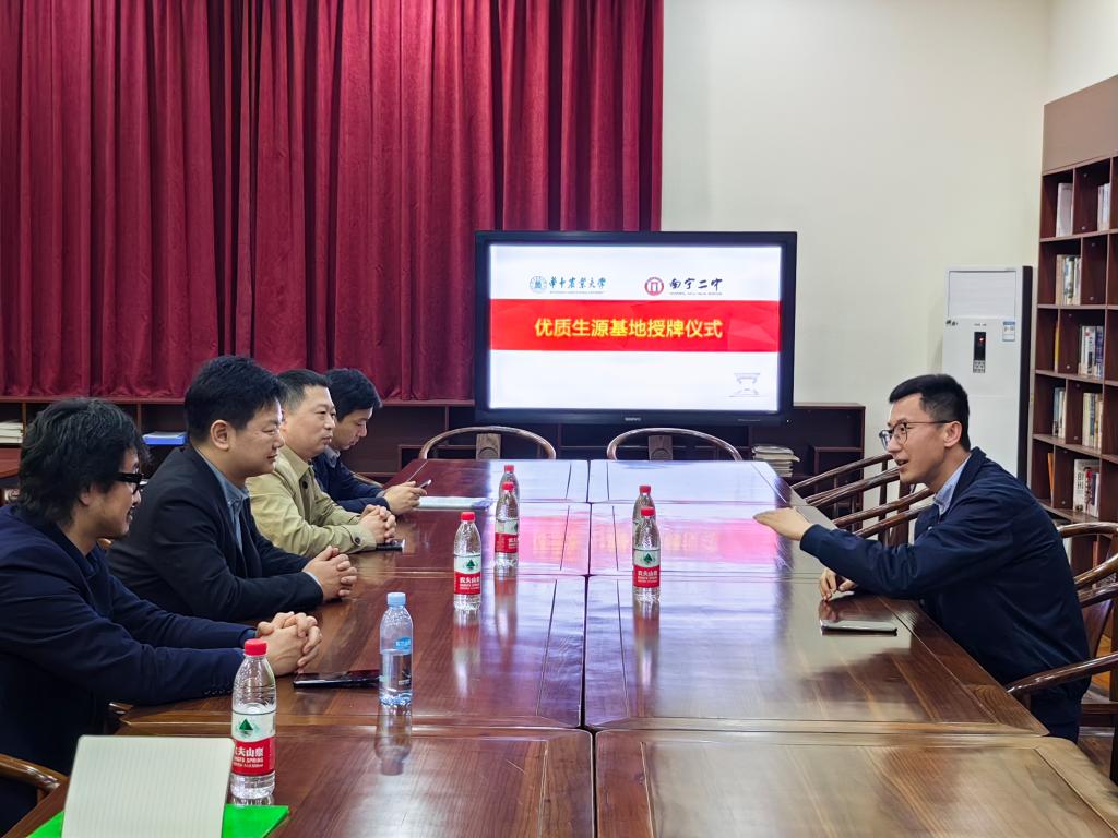南宁二中副校长于成宽表示,“教授进中学”活动兼具科普性和趣味性,能够激发高中生的专业兴趣,立下学习探索之志,在新高考的背景下对学生高考选科具有较强指导意义。南宁三中副校长莫怡祥带领我校招生宣传人员参观了该校“耕读园”特色劳动教育基地和鱼菜共生实践基地,认为我校力行的“耕读”教育与该校育人理念不谋而合,并期待与我校建立更广泛深入的联系和合作。