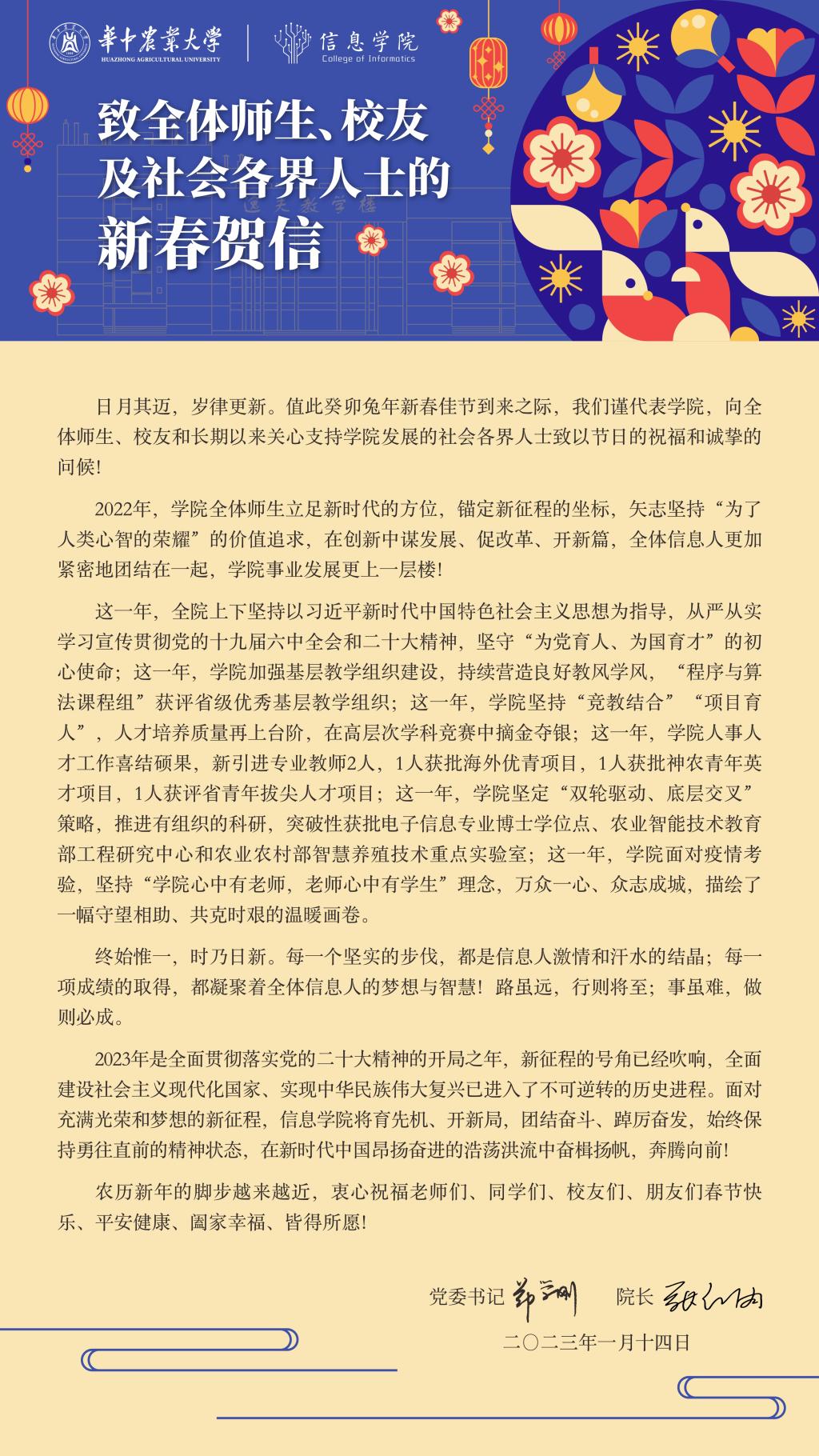 致全体师生、校友及社会各界人士的新春贺信