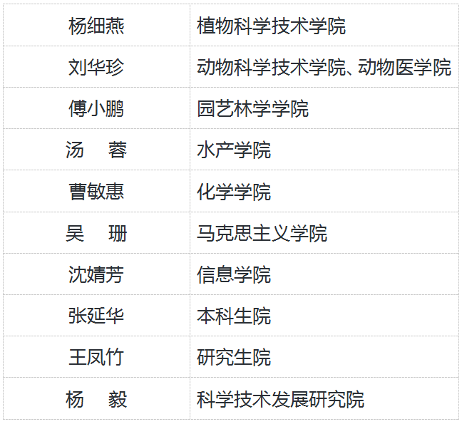 南湖新闻网讯(通讯员 肖霞)近日,华中农业大学第十届先进女教职工评选结果揭晓。经单位申报、集中评审和学校公示,杨细燕等10名女教职工获此殊荣,拟于2025年“三八”国际劳动妇女节之际予以表彰。截至目前,学校已有110名先进女教职工受到表彰。