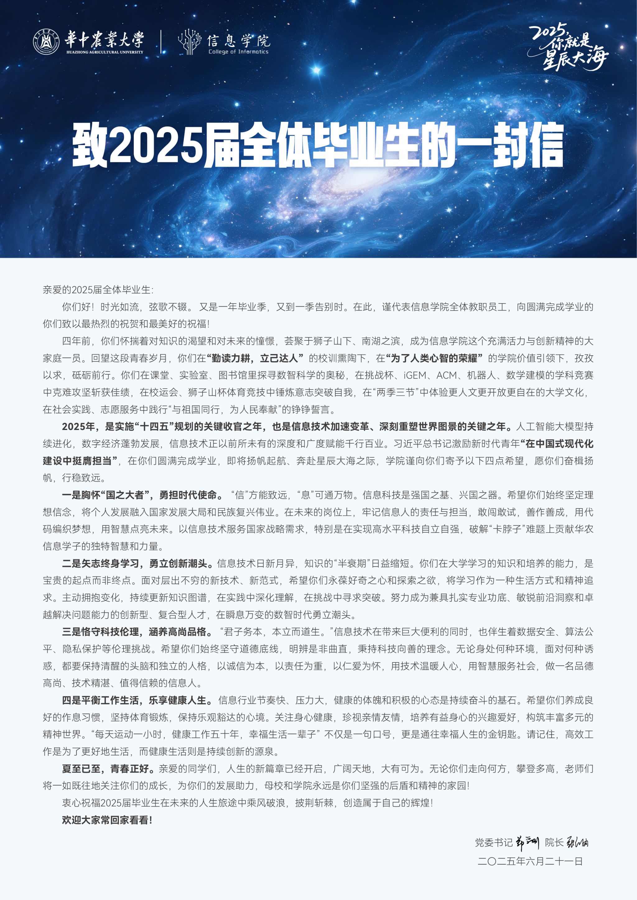 致今天足球比赛比分 2025届全体毕业生的一封信
