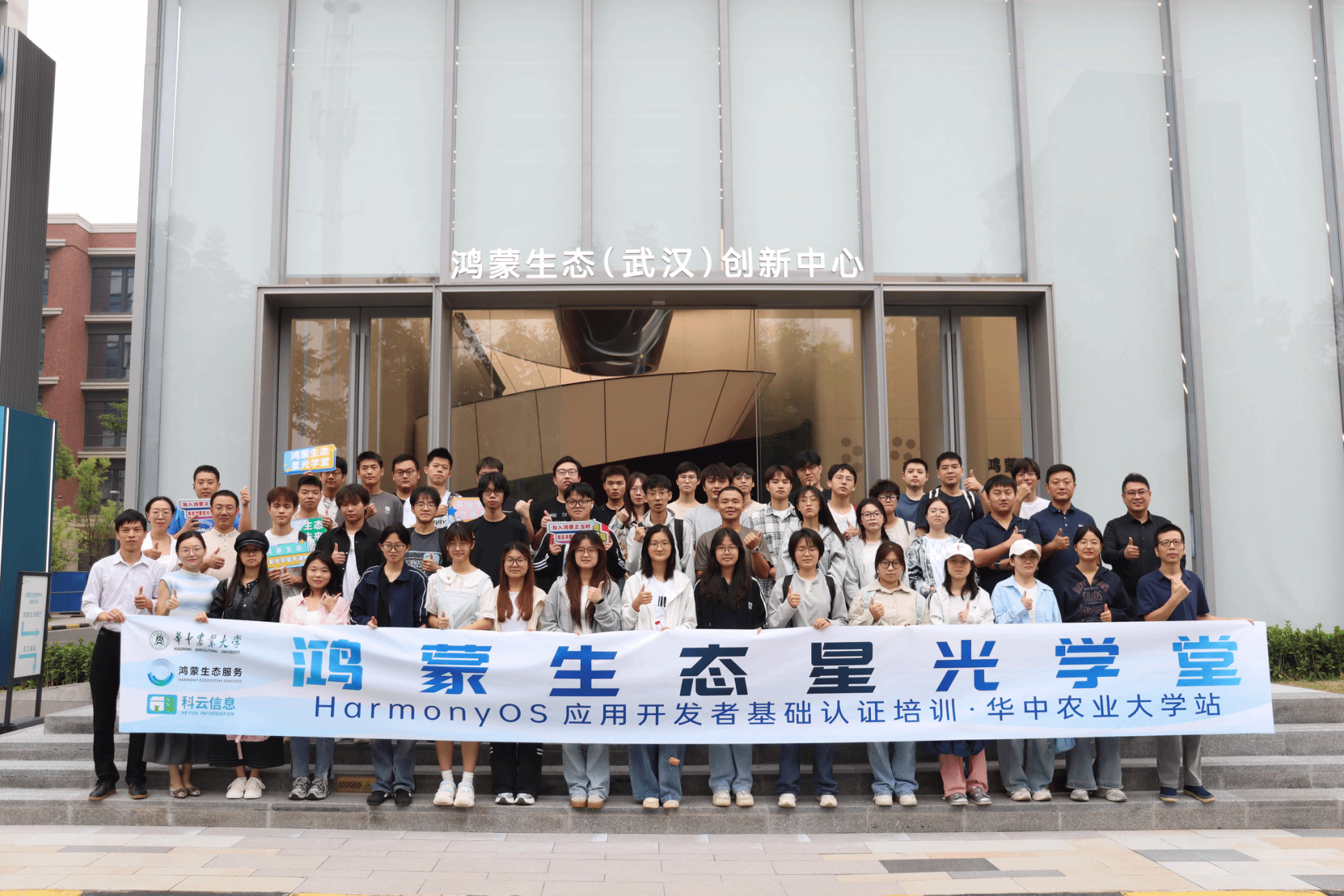 (图文 | 鸿蒙生态创新中心 初审 | 李昱含 终审 | 袁嘉晨 叶双休)2025年9月18日至19日,由鸿蒙生态(武汉)创新中心主办、武汉科云信息技术有限公司承办的“鸿蒙生态星光学堂” 第八期・华中农业大学站,在我校顺利举办。活动聚焦HarmonyOS应用开发的前沿方向与实践路径,吸引了我校众多学生与技术爱好者积极参与,为人才培养与产业实践搭建了高质量平台。