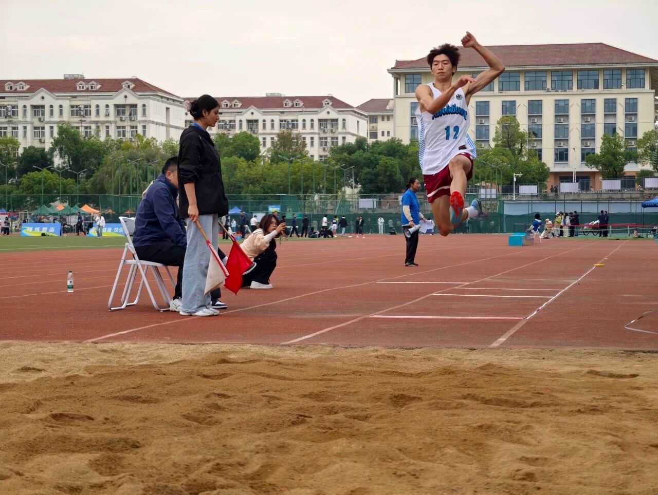 信息2503班田杰再次展现绝佳的竞技状态,一举拿下男子跳远第二名,计算机类2406班陈宣文也不断挑战自我,奋力起跳,最终取得男子跳远第八名。计算机类2508班吴金喜在女子组实心球前抛项目取得第三名的好成绩。刘洋老师也取得男子教工组实心球前抛第八名。