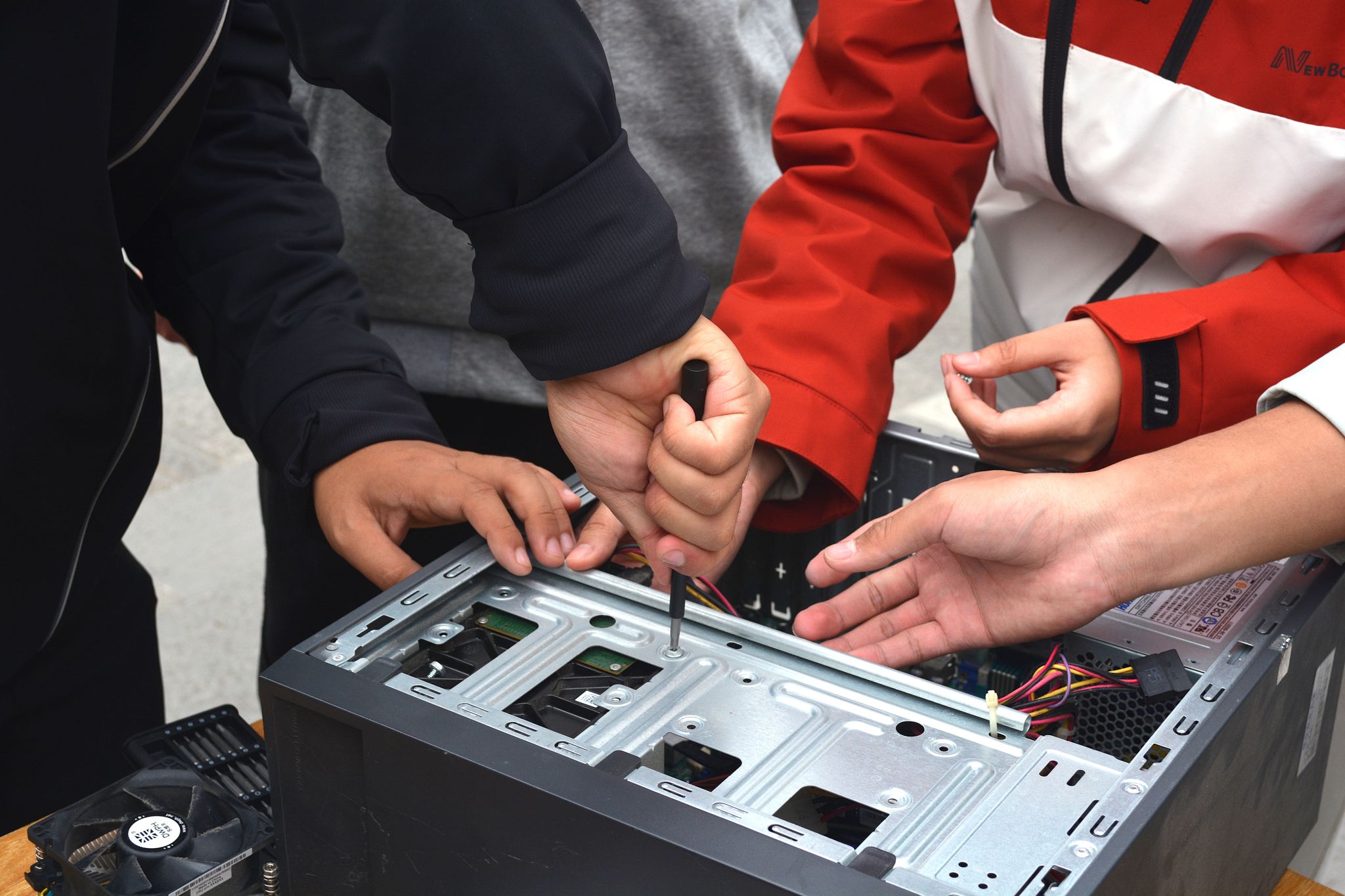 活动现场,志愿者们通过实物演示,详细讲解了计算机硬件组成、各部件功能及拆机安全规范——从“如何正确拆卸螺丝”到“避免静电损坏部件”,每个细节都讲解到位。