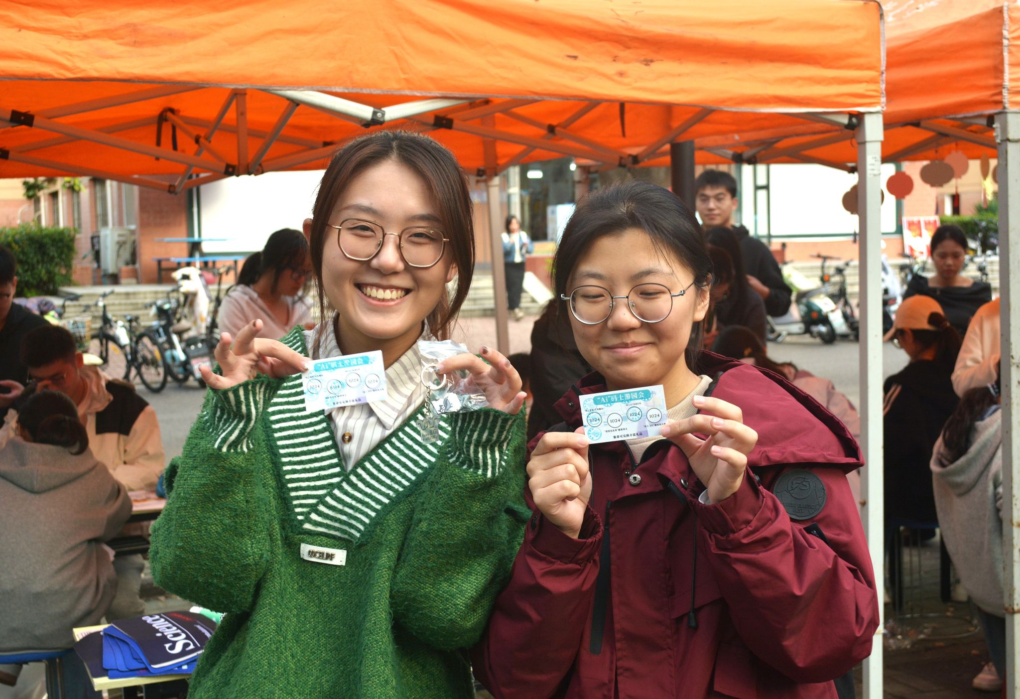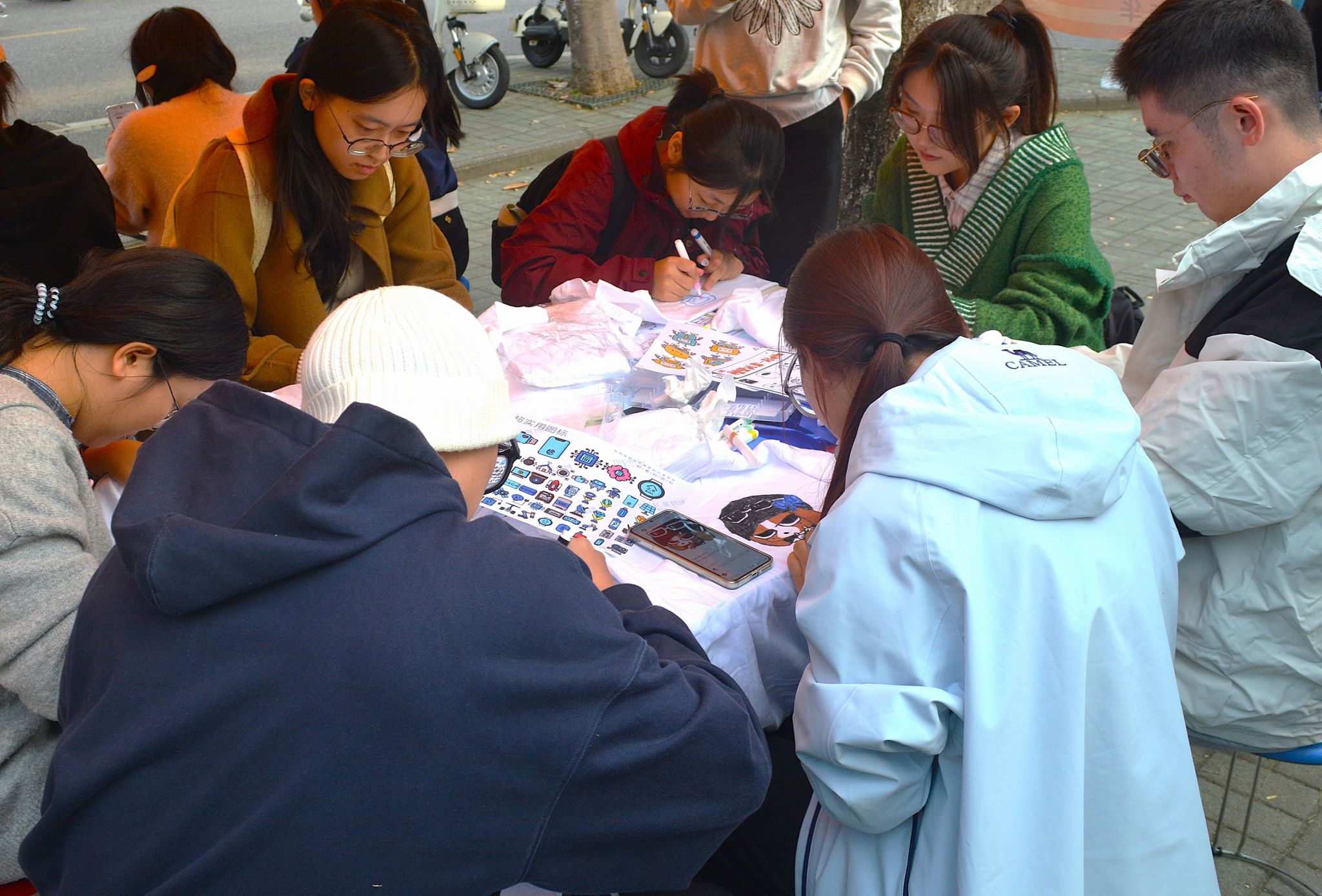“码上潮绘”的摊位前,同学们握着画笔在T恤上尽情挥洒,当机器人、系统图标与自己的姓名缩写融为一体,每件“潮服”都成了独一无二的青春宣言。大家挥动画笔,让各种颜色在T恤上驰骋,画笔一次次划过、一点点渲染。此刻的代码与算法,早已褪去冰冷的外衣,成为了参与者的专属色彩。“我喜欢绘画,对计算机也比较感兴趣,我享受创作带来的乐趣,这是专属于我的‘信息T恤’。” 计算机类2501班杨宝茹的话语,道出了所有参与者的心声。