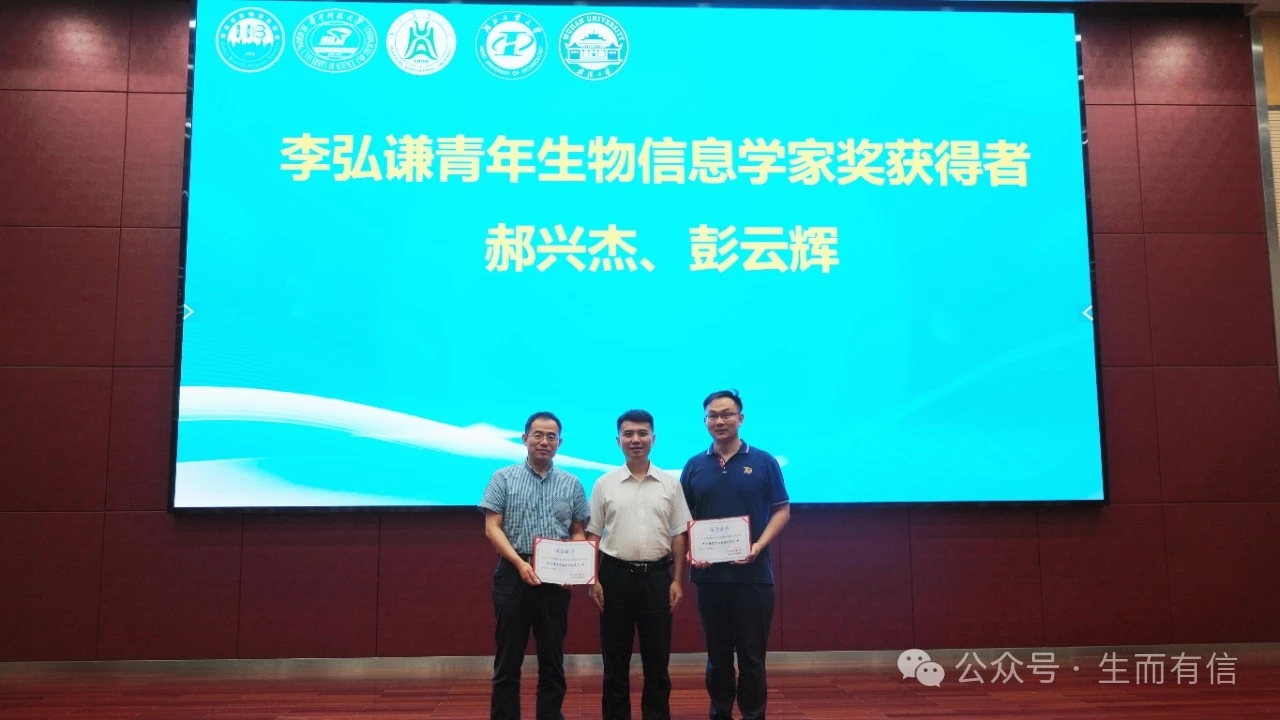青年学者进阶论坛设置了2个特色环节:特色一:特邀专家点评和指导,邀请省内外生物信息领域专家对青年学者的报告进行点评和指导。特色二:李弘谦青年生物信息学家奖评选,设立李弘谦青年生物信息学家奖,鼓励青年学者勇攀科学高峰。经各位专家严格评选和不记名打分,最终评选出2位获奖人员,分别是华中科技大学郝兴杰副教授和华中师范大学彭云辉副教授,张红雨理事长为获奖者现场颁奖。