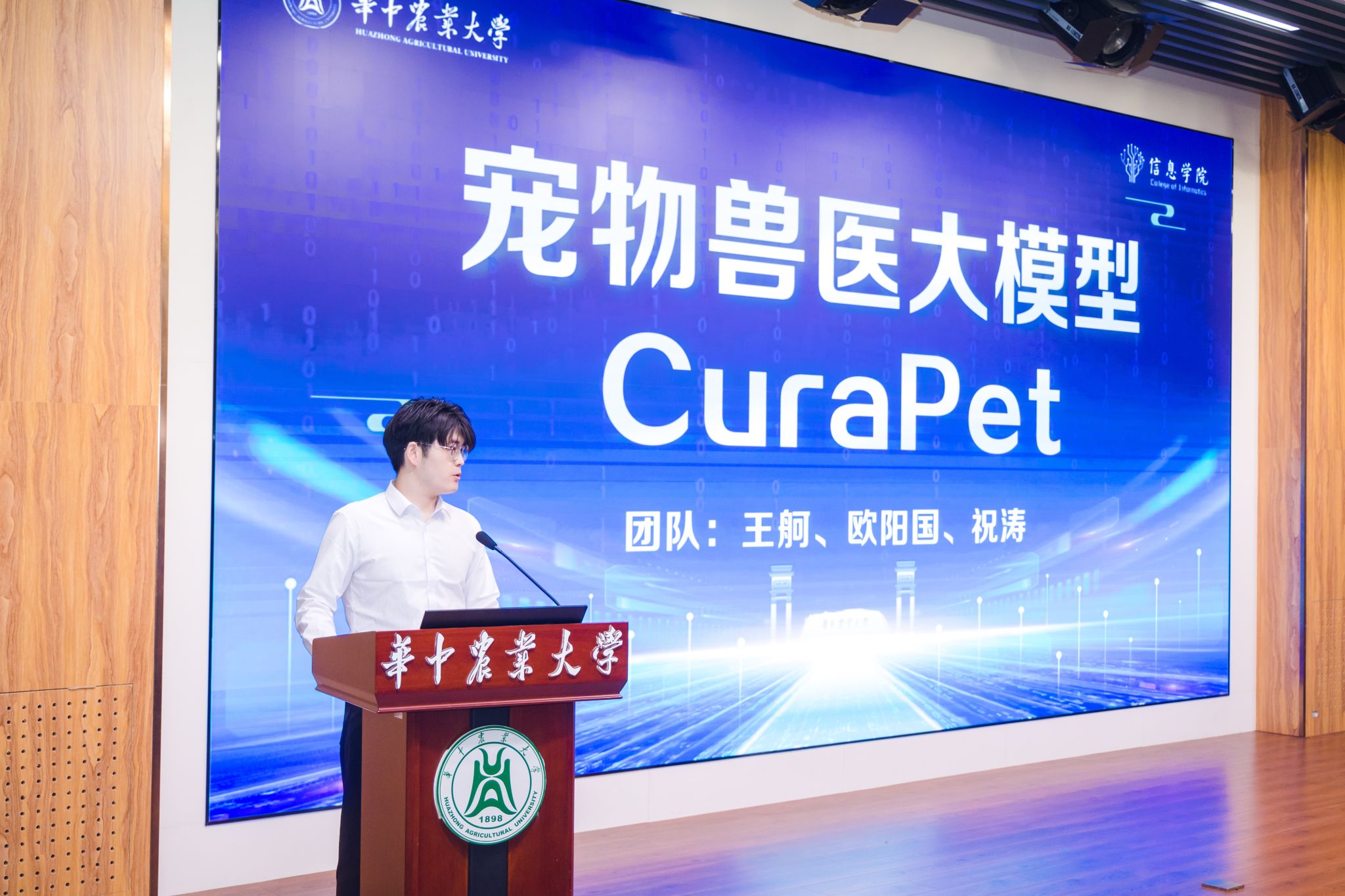 由孙元辉、韩梦婷、彭宗扬三名同学组成的团队以“MethylAI:自动化挖掘文本中的DNA甲基化生物标志物”为题汇报。团队借助大模型微调技术,从海量文献中高效提取表观遗传学标志物,极大提升了农业微生物与动植物表观遗传研究效率,为农业科研注入新动能。由王舸、欧阳国、祝涛三位同学组成的团队成功开发出“宠物兽医AI大模型CuraPet ”。该项目将AI大模型蒸馏技术与宠物医疗深度融合,不仅实现了宠物疾病的智能诊断,还能生成个性化治疗方案,为宠物医疗行业提供了高效精准的AI工具,有望革新宠物诊疗模式。